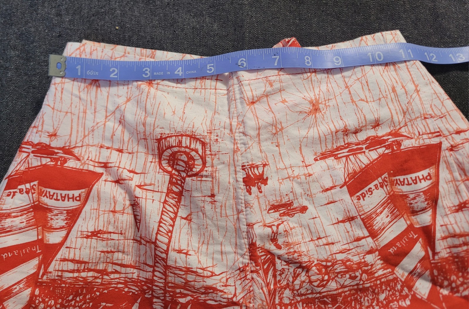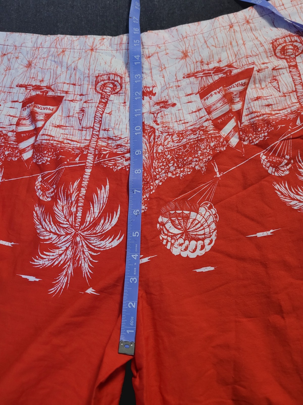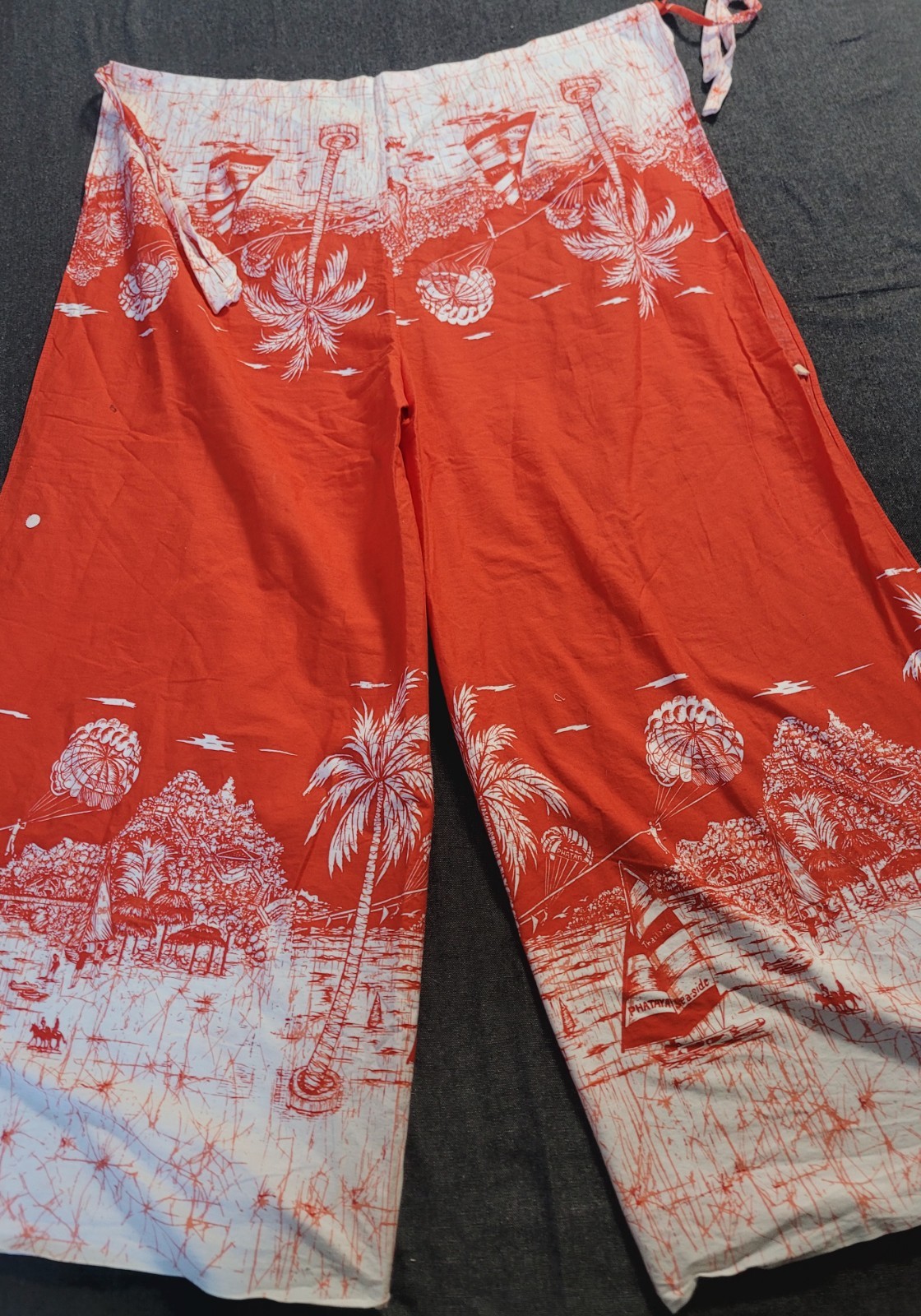 Vintage 60s 70s Thailand Palazzo Pants One Size Tie Waist Red White Whide Leg