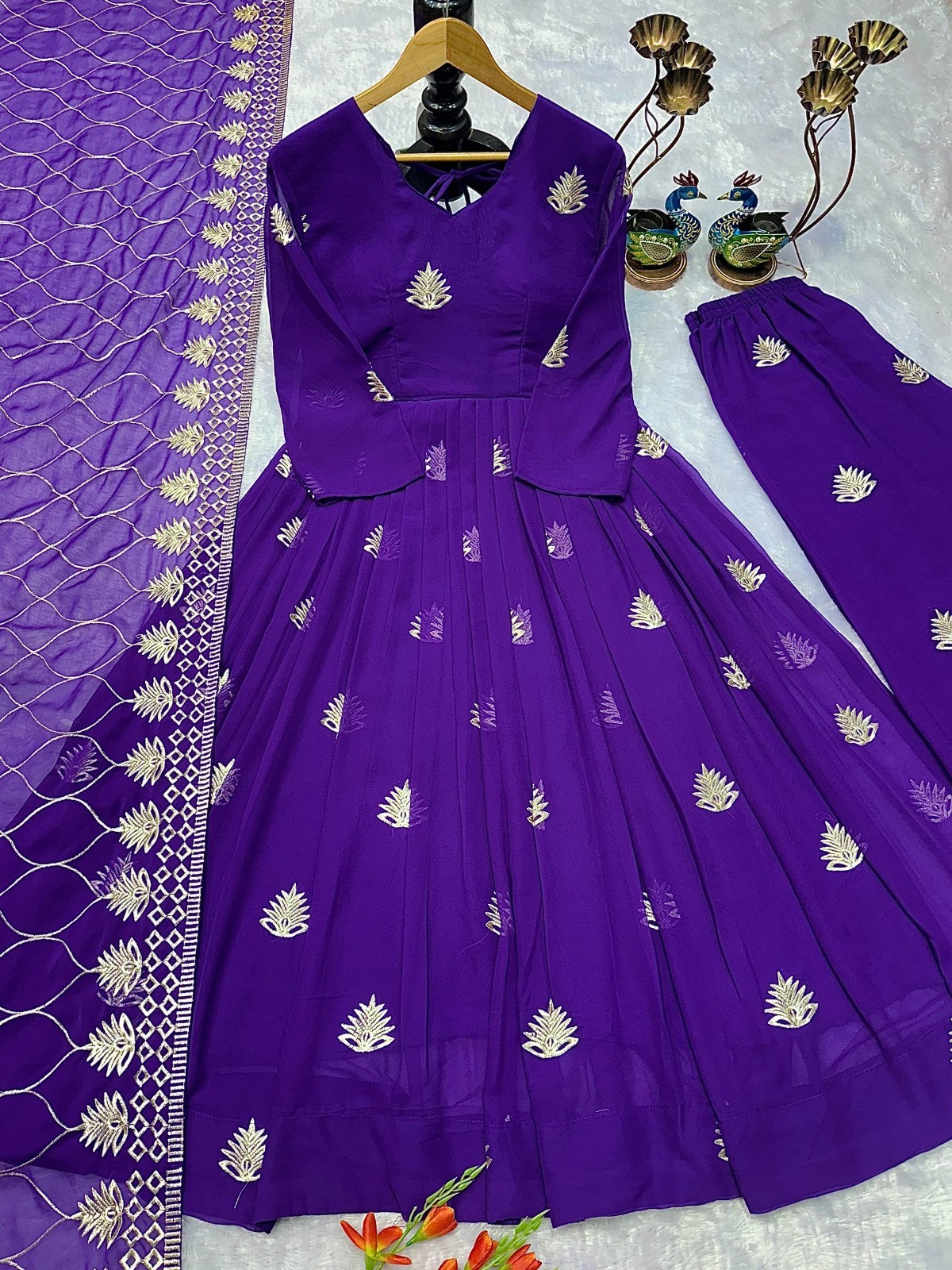 как выглядит Unique Look Purple Faux Georgette Salwar Kameez With Dupatta For Women фото