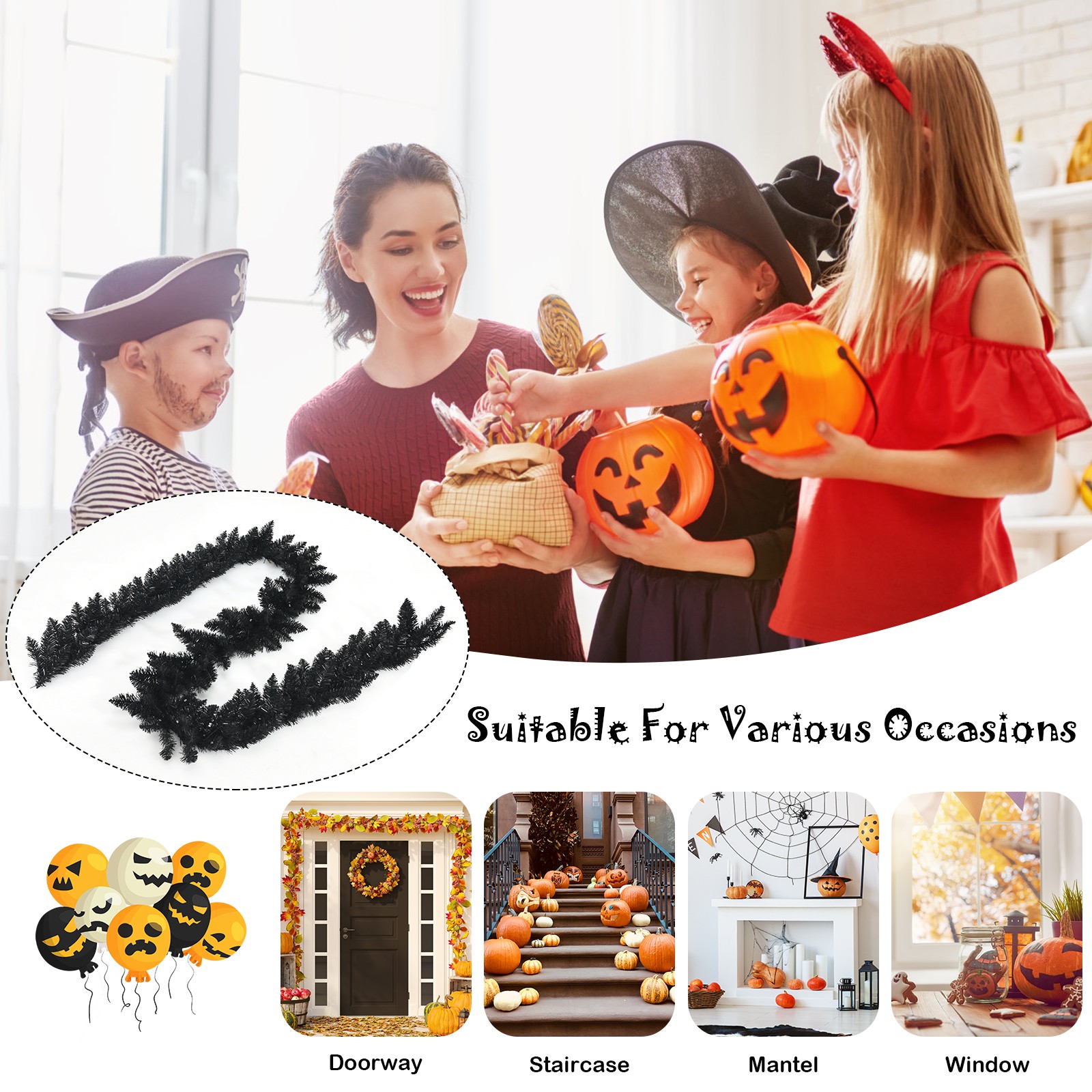 как выглядит Costway 9ft Pre-lit Christmas Halloween Garland Black w/ 50 Purple LED Lights фото