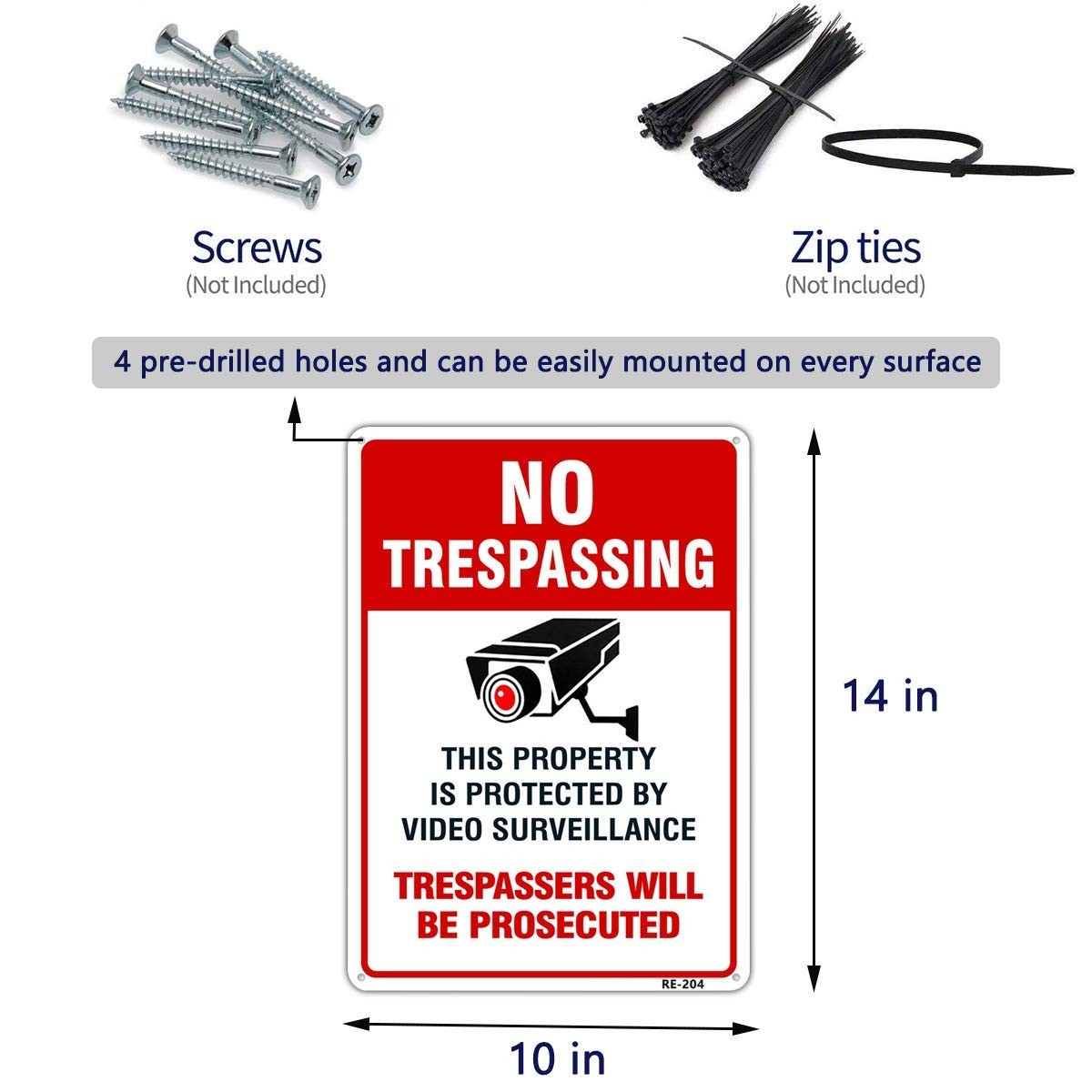 Large Video Surveillance Signs Outdoor,no Trespassing Sign Aluminum 10x14 Inch U