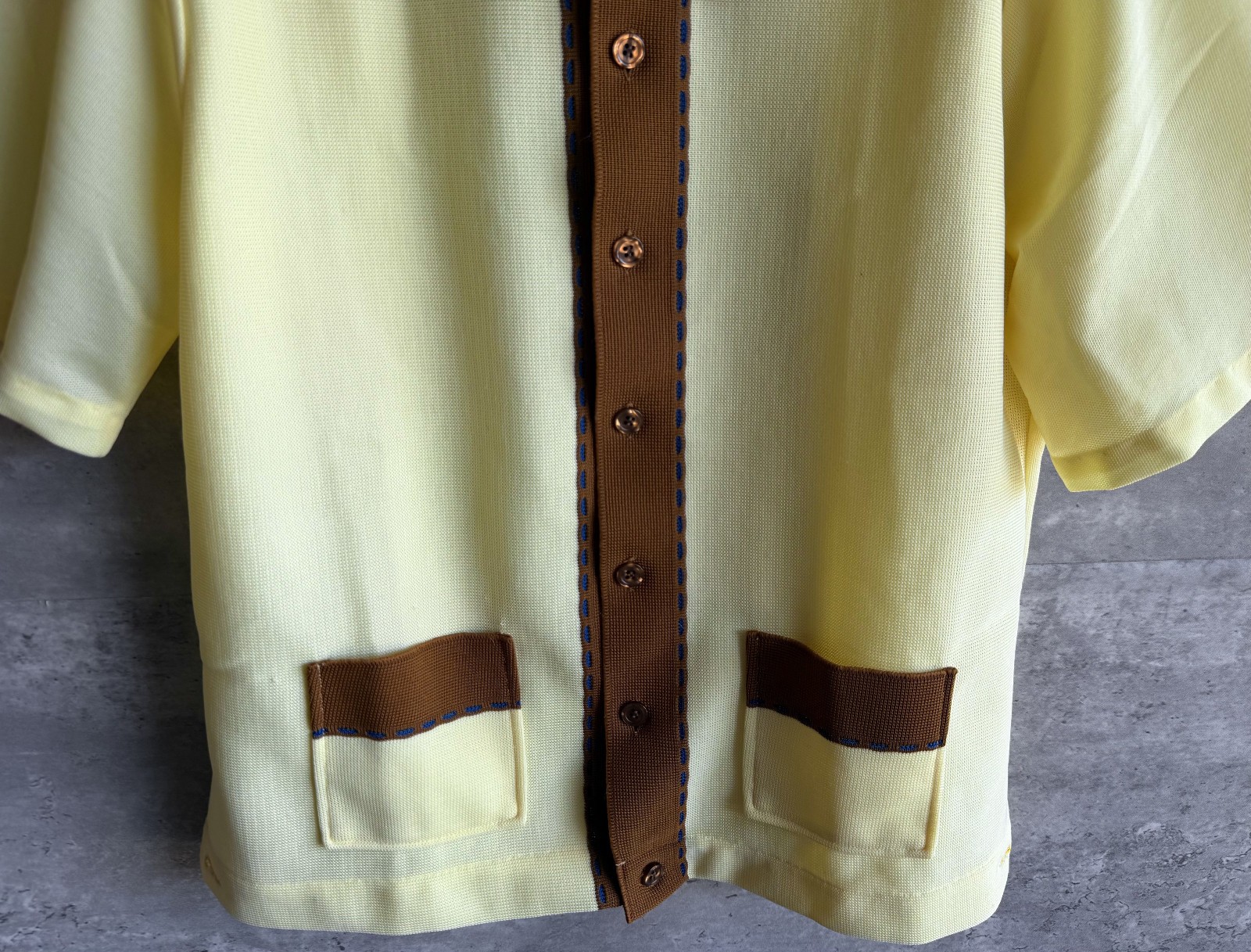 как выглядит Vintage 1970s Spire California Yellow Brown Casual Button-Down Shirt Size M фото