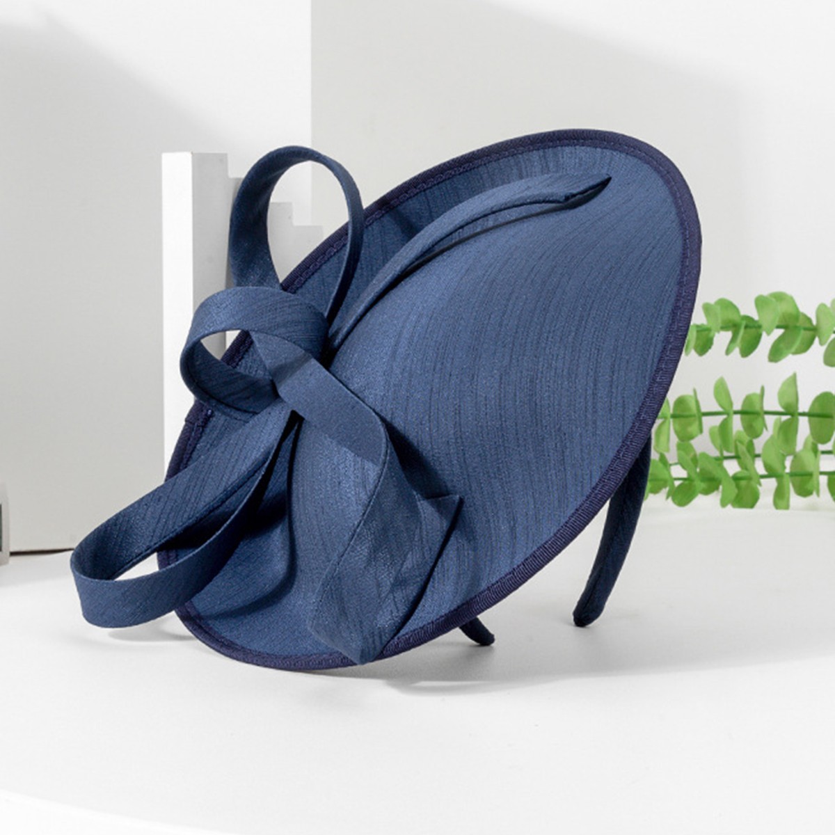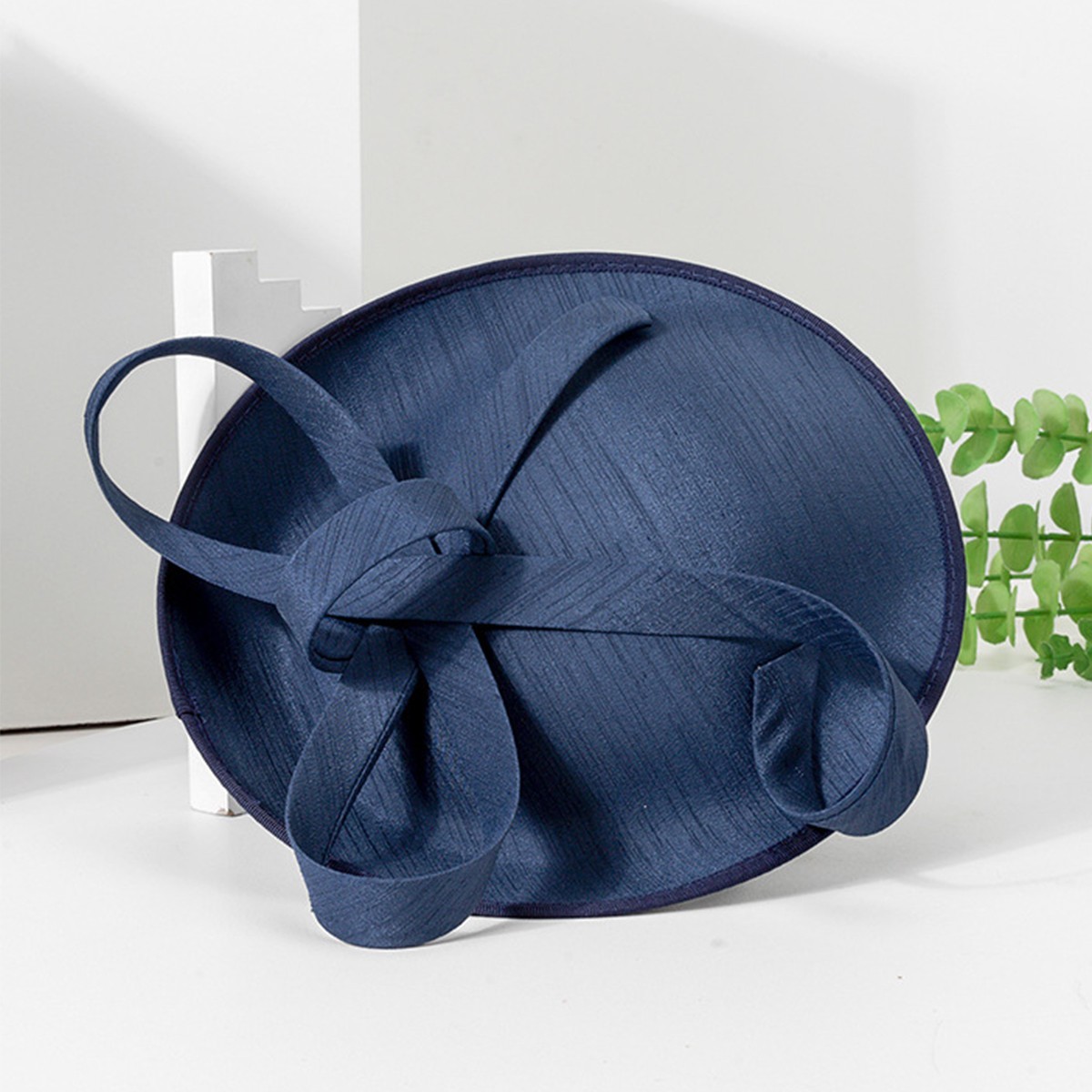 как выглядит Navy Blue Wedding Fascinators Hats With Bow Tea Party Derby Church Hat For Women фото