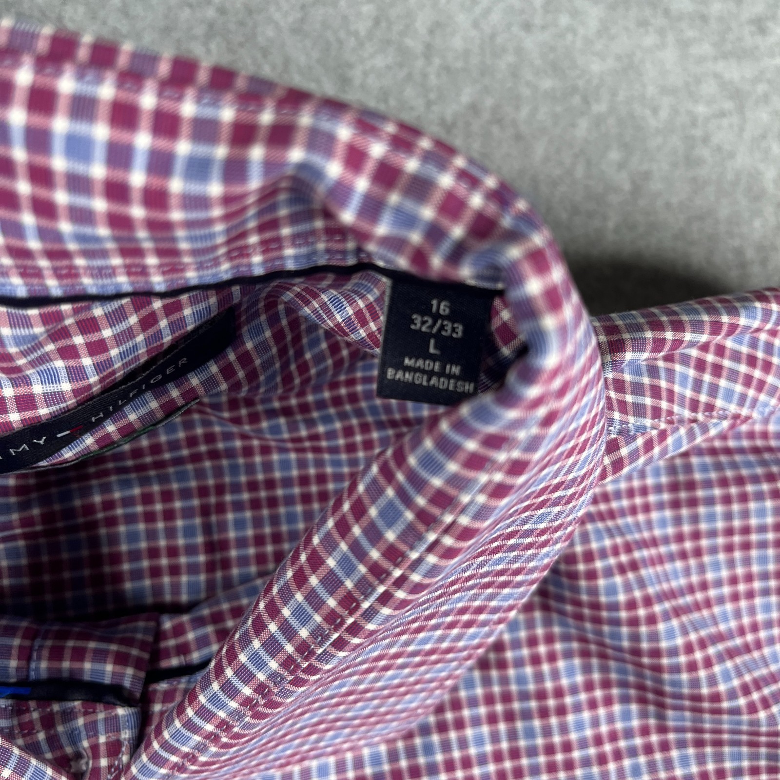 как выглядит Tommy Hilfiger Shirt 16 Large Red Blue Check Slim Fit Button Up Long Sleeve Mens фото