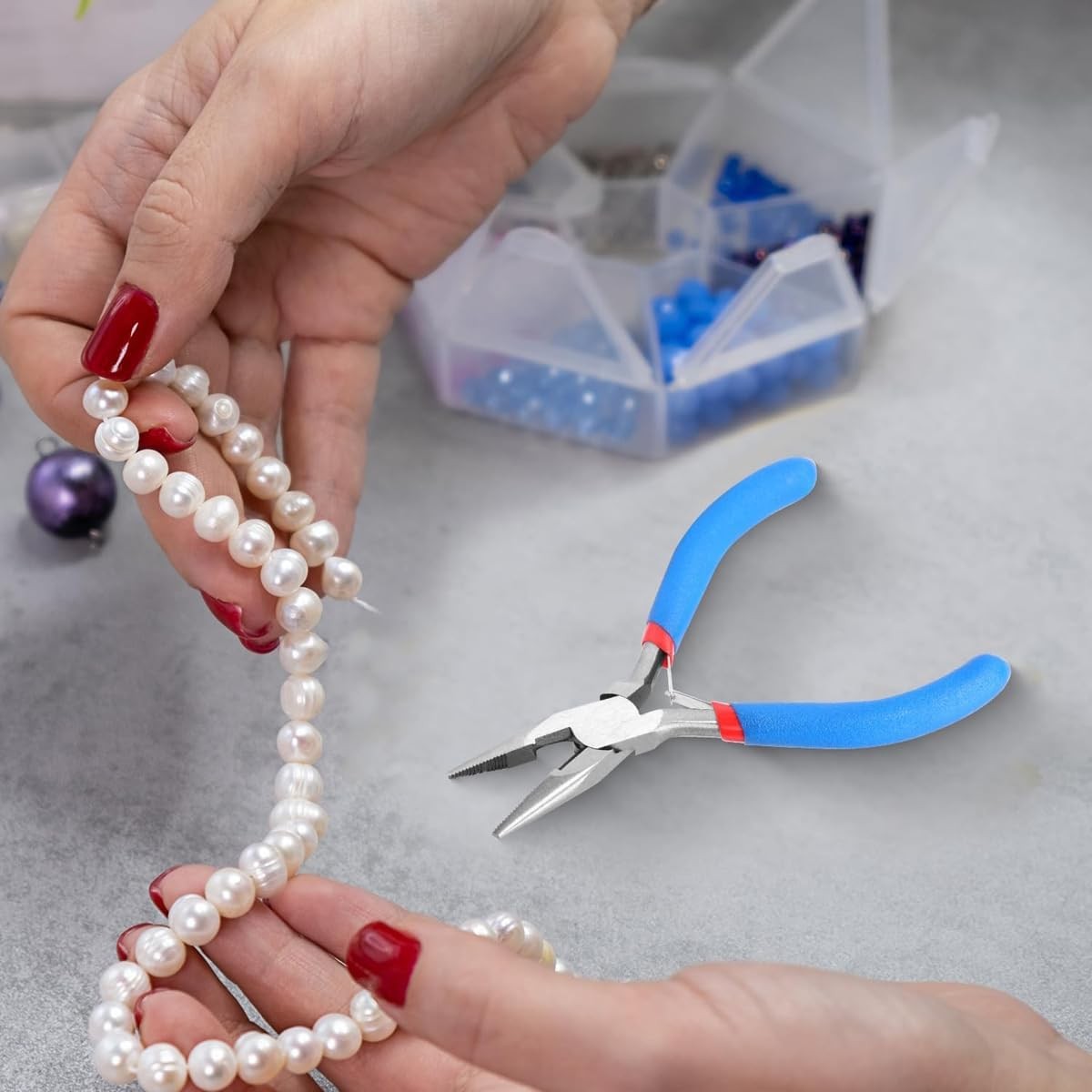 Mini Needle Nose Pliers - 4.5 Inch Jewelry Making Pliers With Comfort Sky Blue
