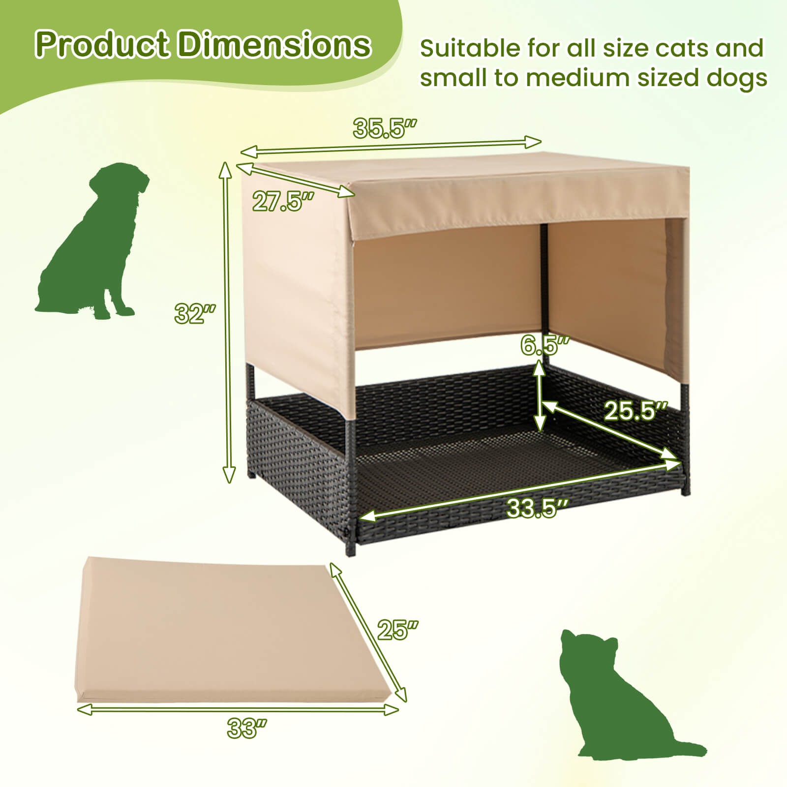 Set Includes: 1 x Wicker Dog House, 1 x Cushion, 1 x User’s Manual