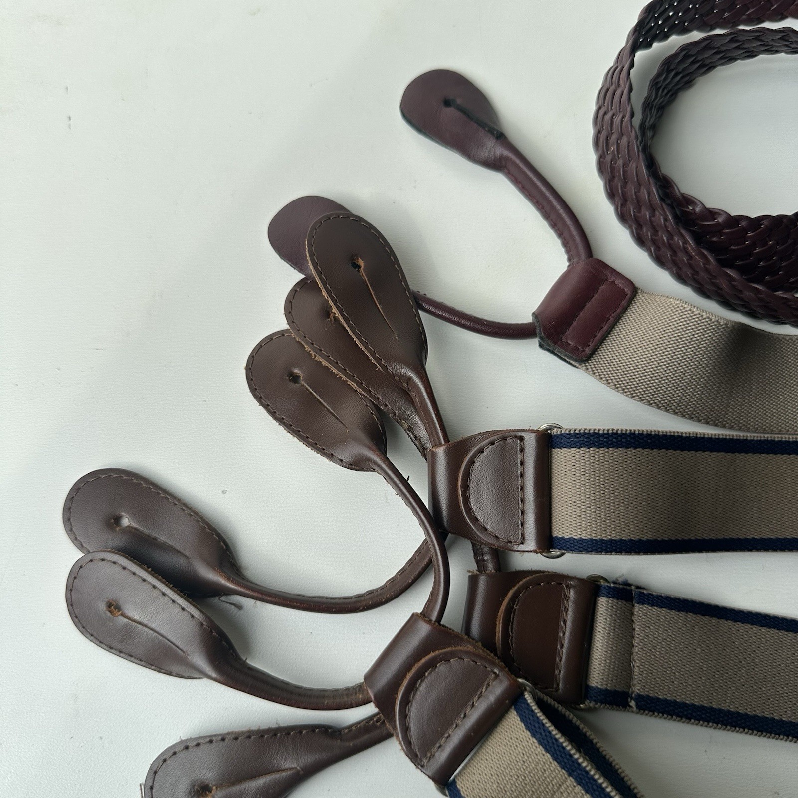 Set suspenders Men Brown Woven Light Brown Blue Striped Gold Colored Hardware OS