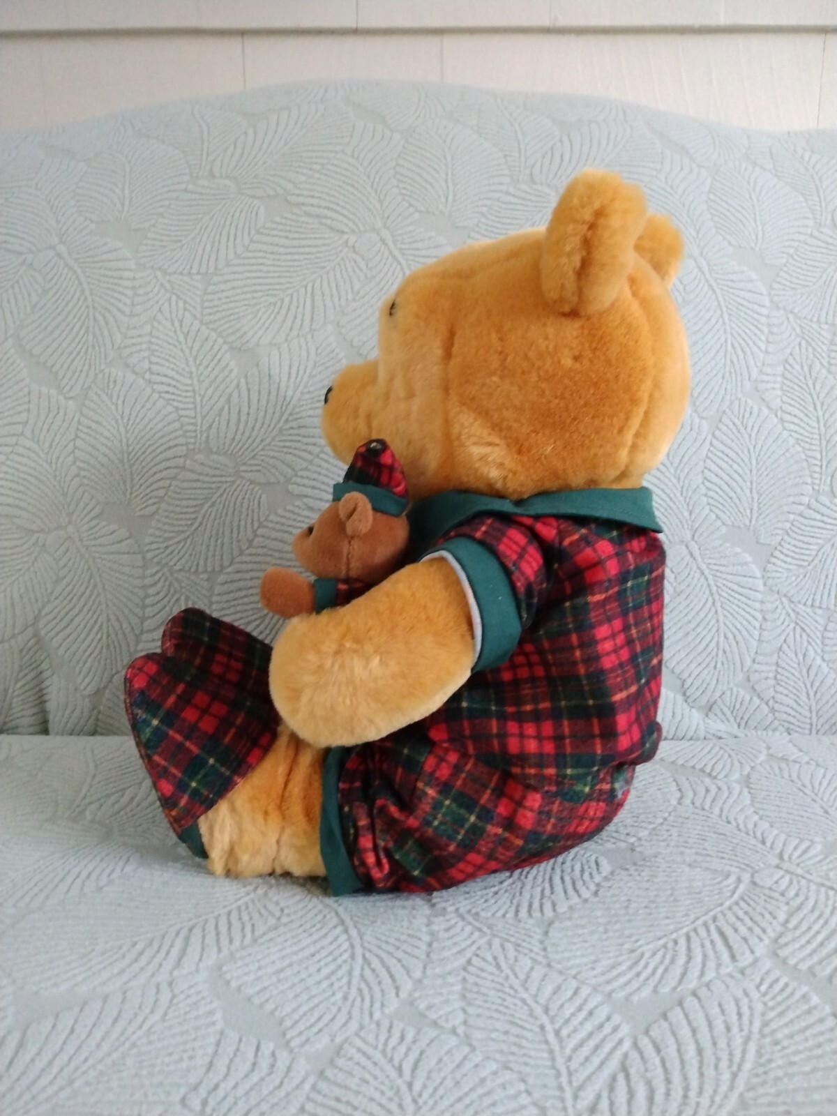 как выглядит VTG Winnie the Pooh Holding Toy Bear Plush Plaid PJ