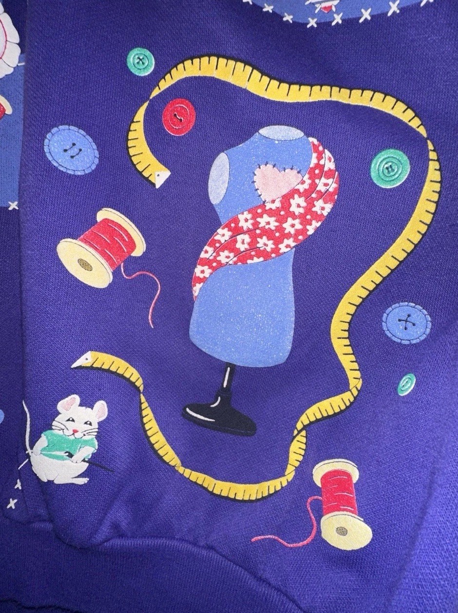 как выглядит Vintage Scarab Pullover Sweatshirt purple Women XL 1X sewing machine cat mice 90 фото