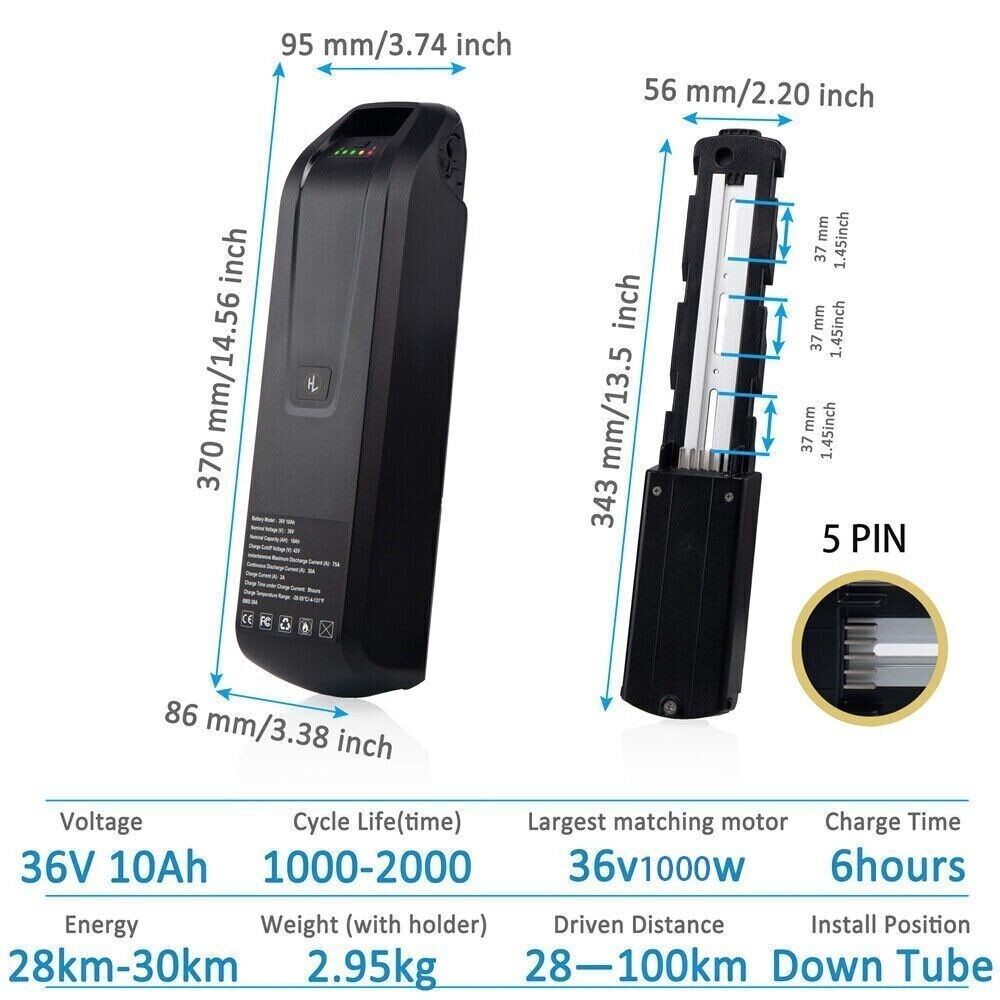 36V Hailong Lithium Ebike Battery Electric Bike Battery 5Pin For 200 1000W Motor