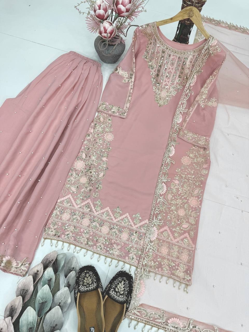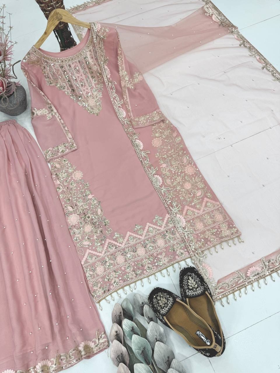 как выглядит Premium Designer Faux Georgette Kurta Palazzo With Dupatta For Women фото