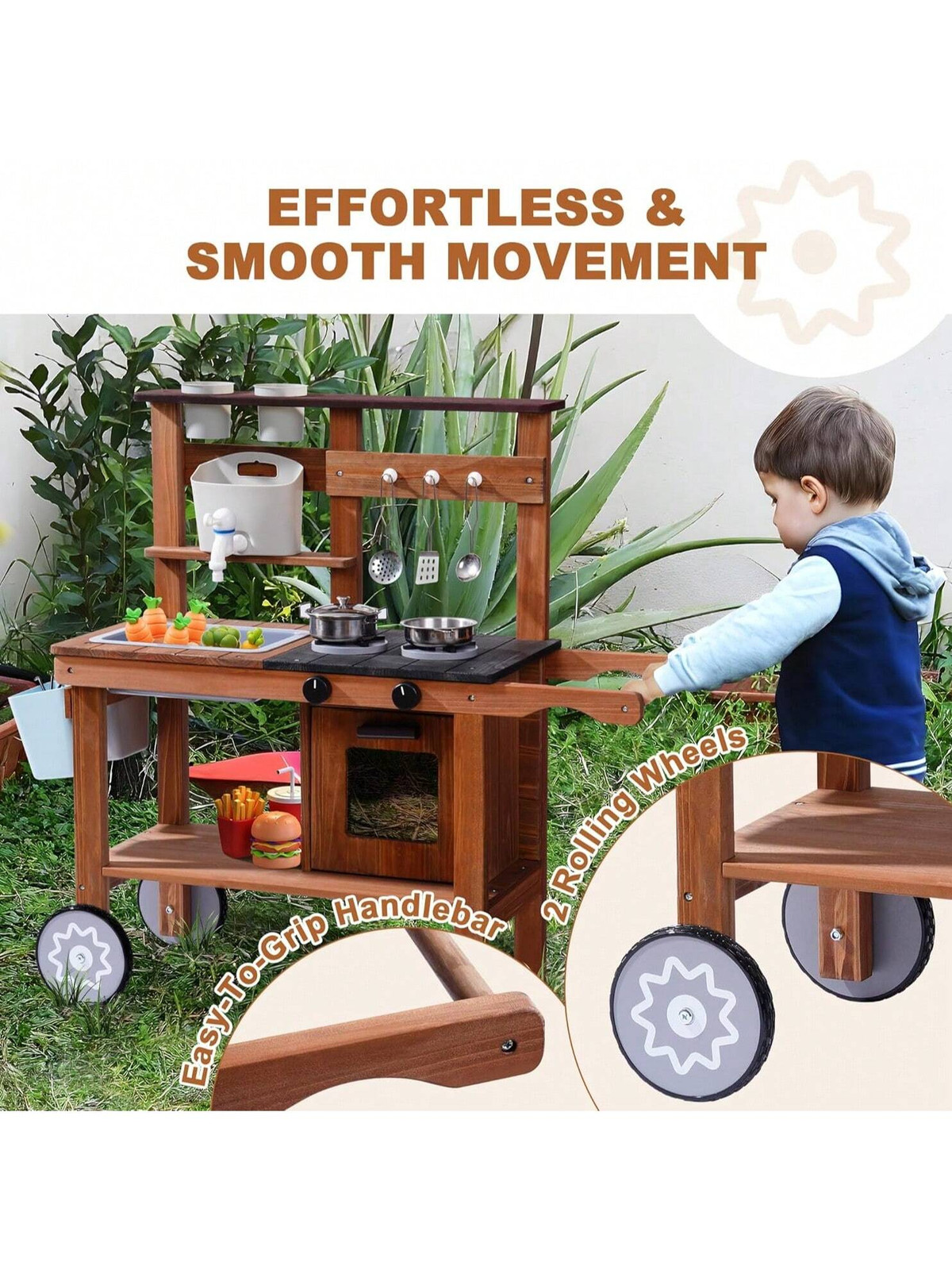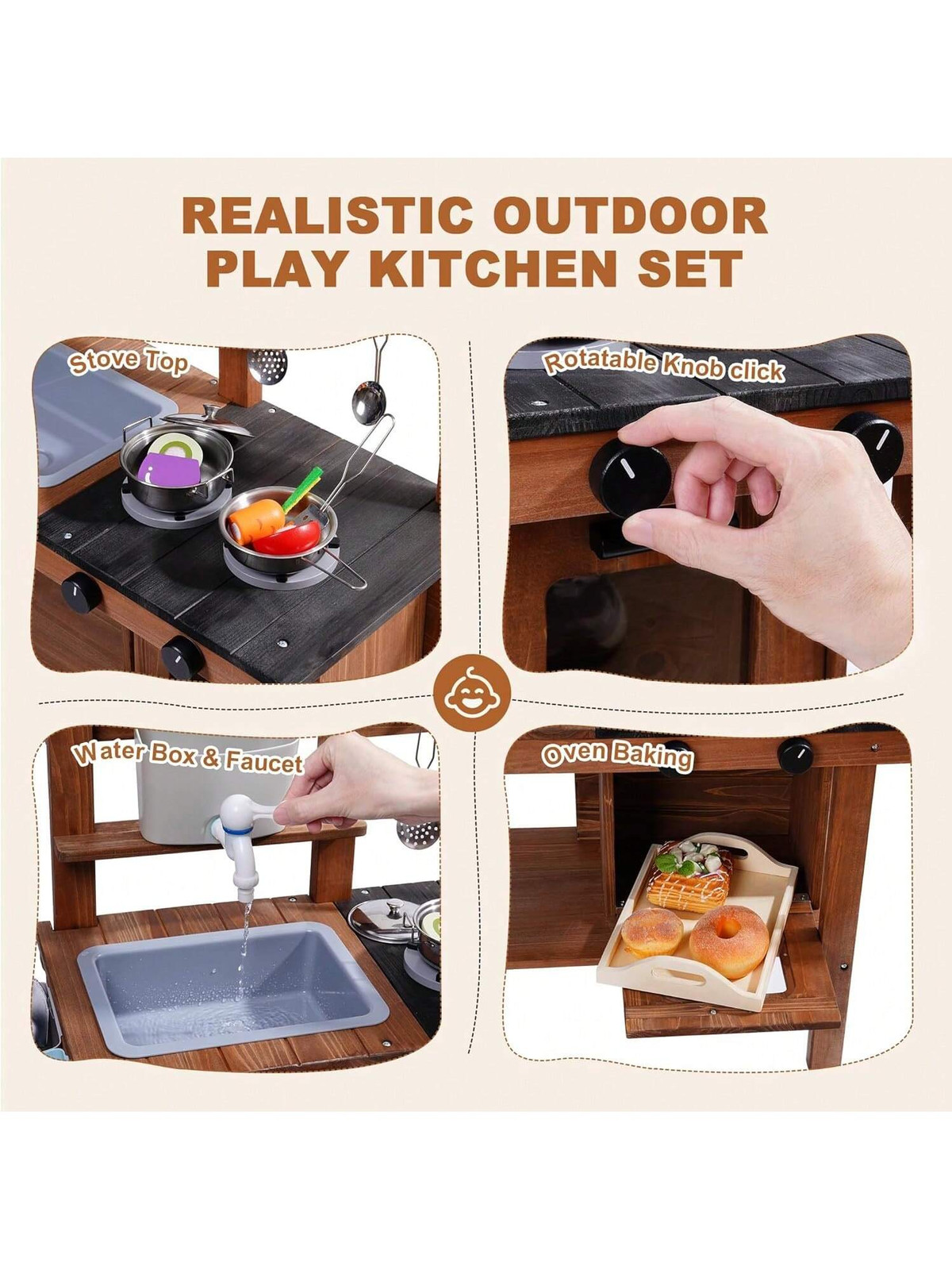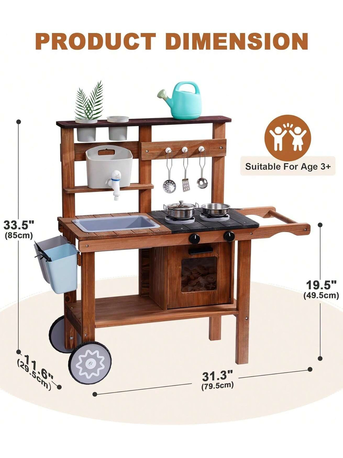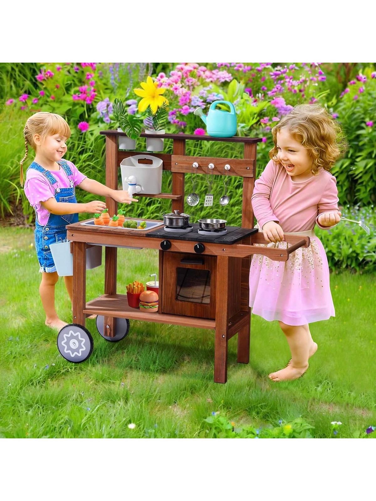 Robotime Robud Kitchen Playset for Kids, Outdoor Wooden Mud Kitchen Set with Rem