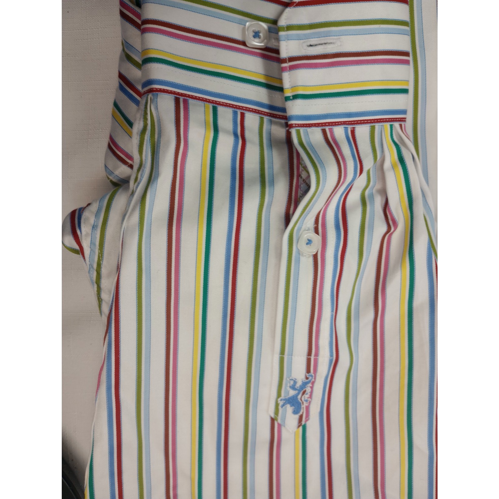 BUGATCHI Men's Shirt Multicolor Stripe Line Long Sleeve Shape Fix Cotton Size XL