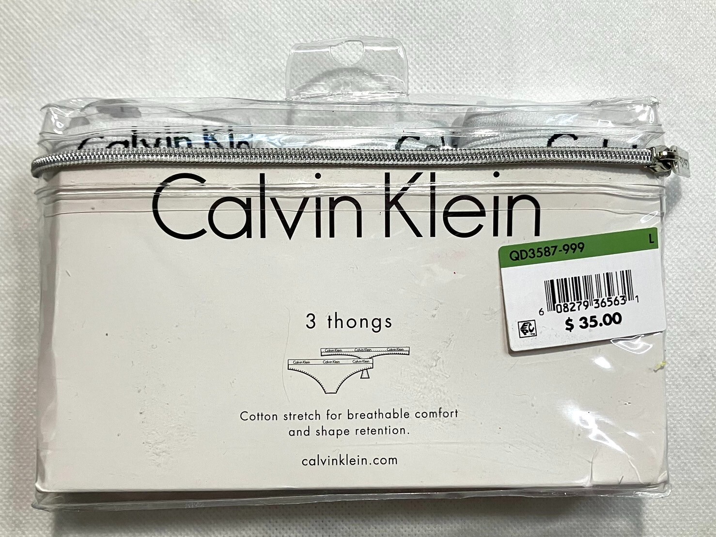 NWT Calvin Klein Size L Carousel Thong QD3587, 3-Pack