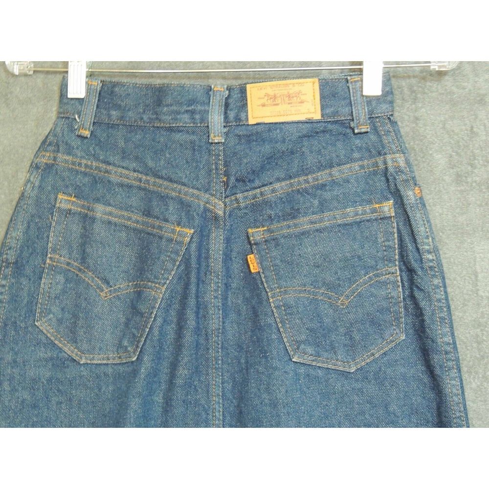 как выглядит 80s Vintage Levis 544 Orange Tab Denim Front Slit A-Line Skirt Sz. VTG-5/24" фото