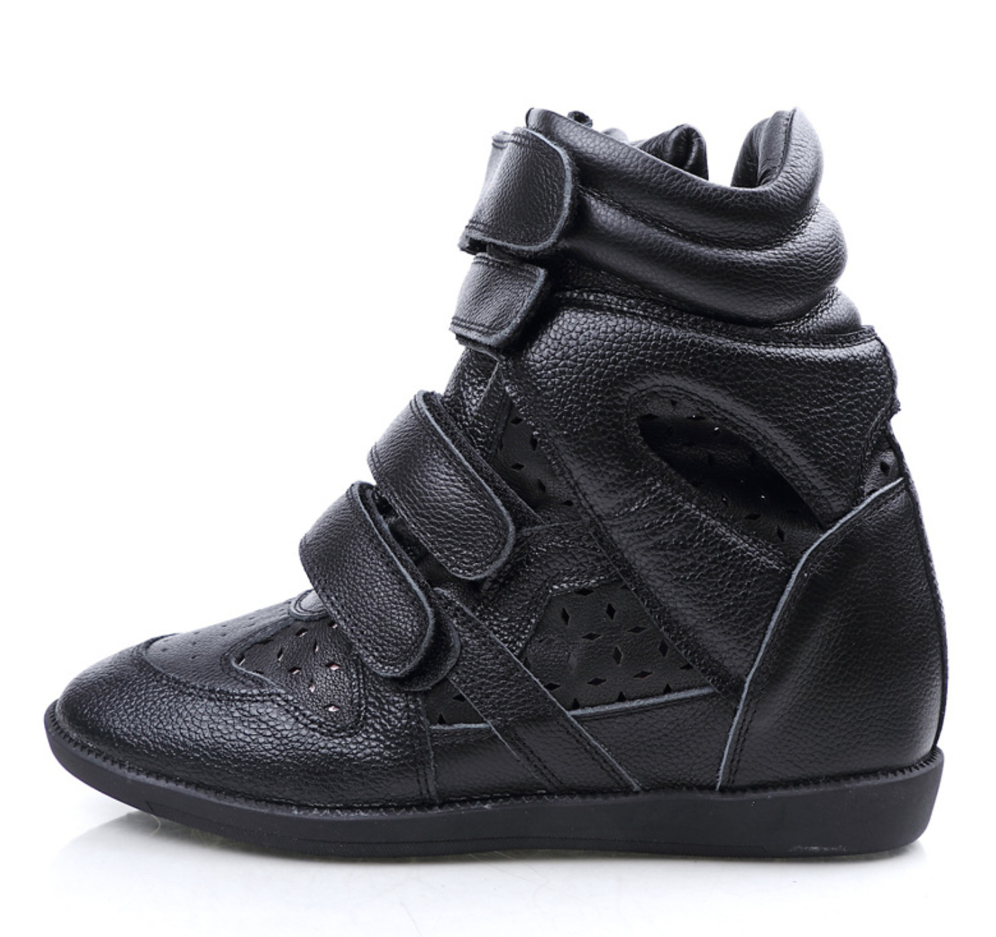 Wedge High Sneaker Black Leather Glossy Isabel Marant Inspired Sneakers