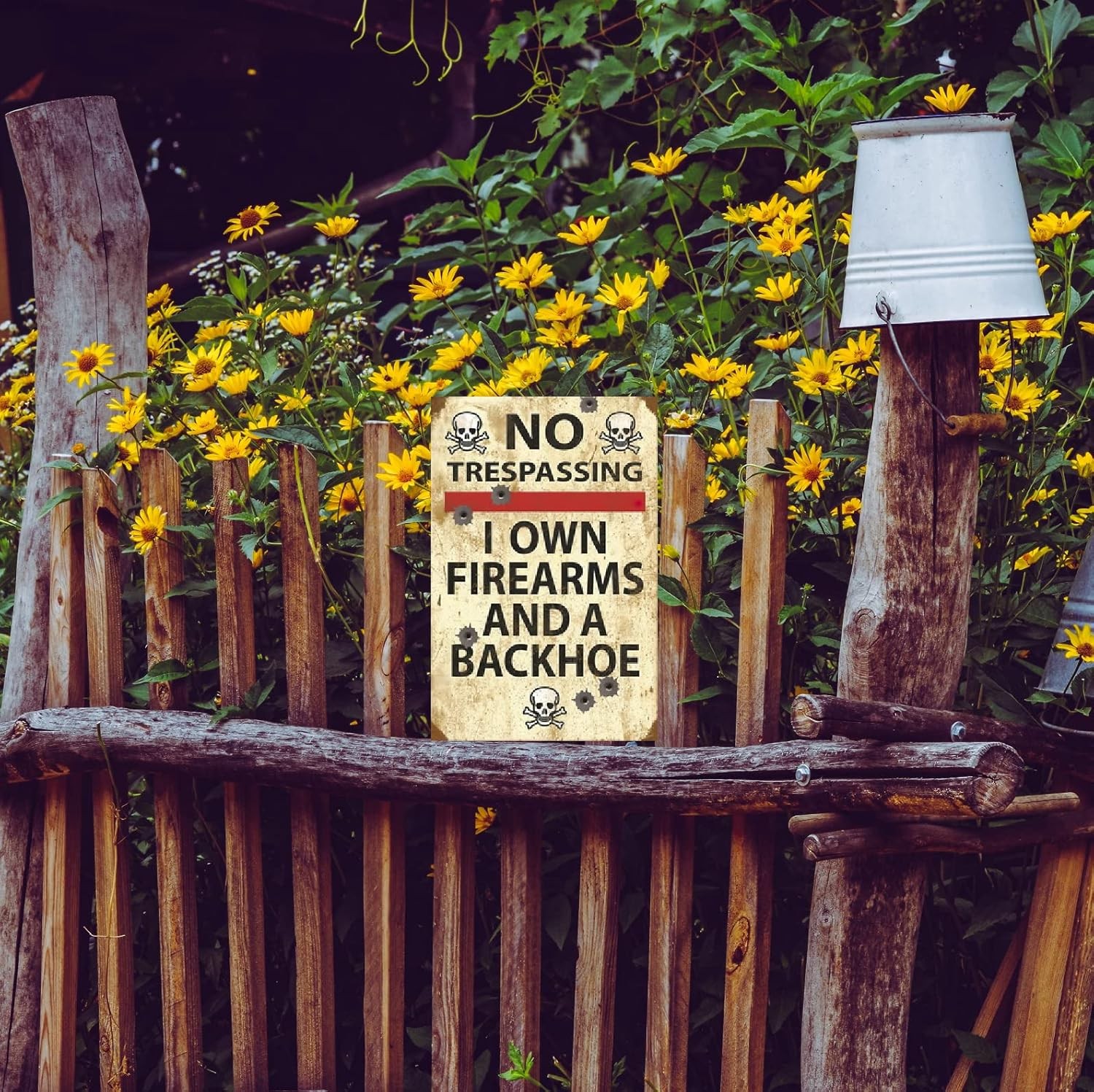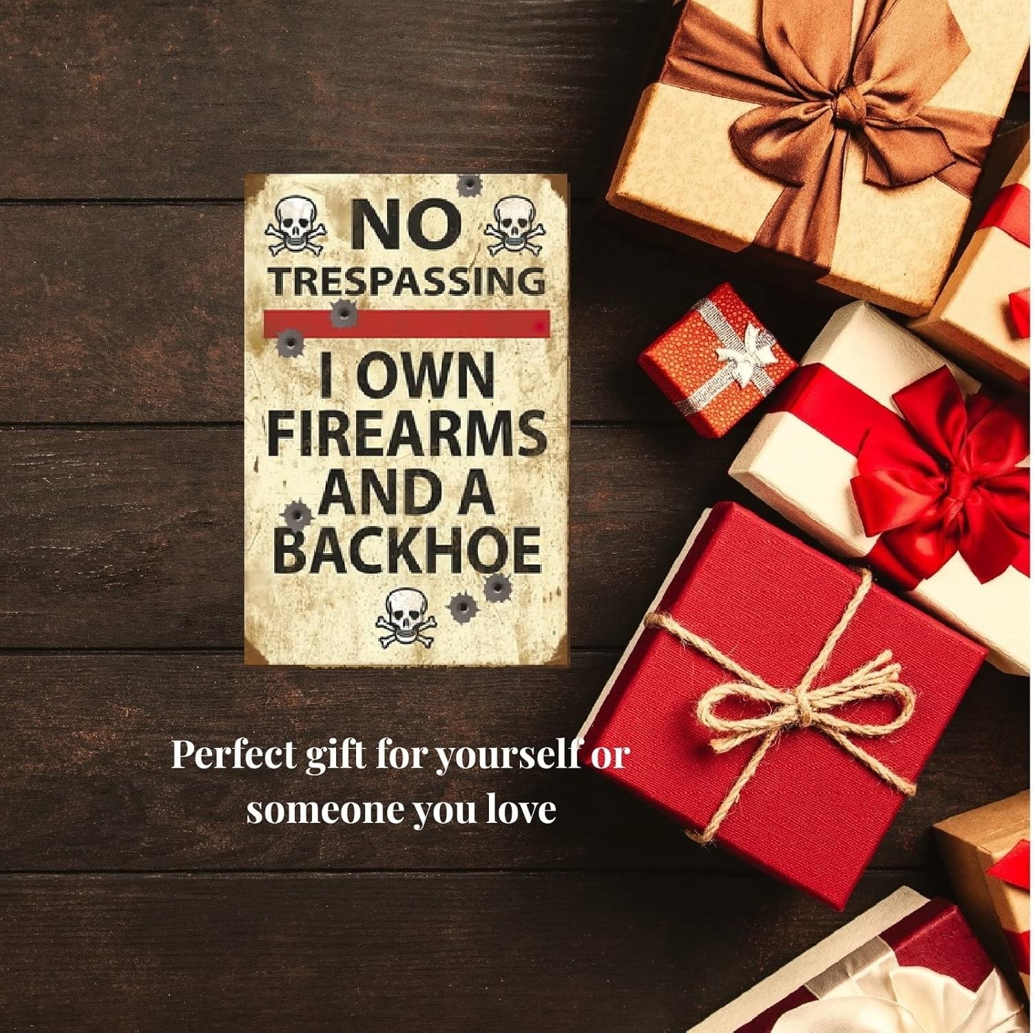 Funny No Trespassing Sign, Tin Metal Signs 8x12 Warning , I Own Firearms and a