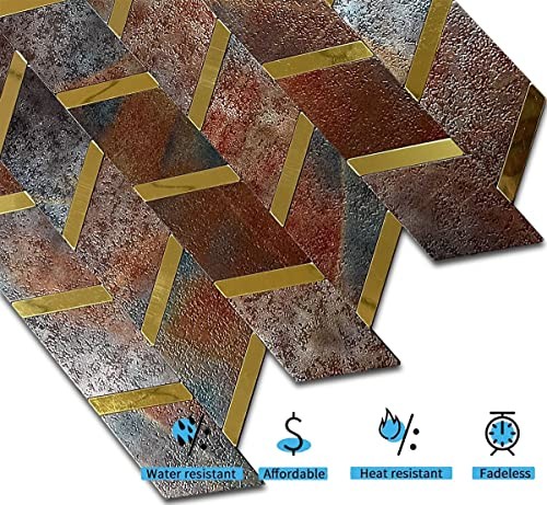 10-Metal Backsplash Tile for Kitchen 10-Sheet Bright Gold colorful Print