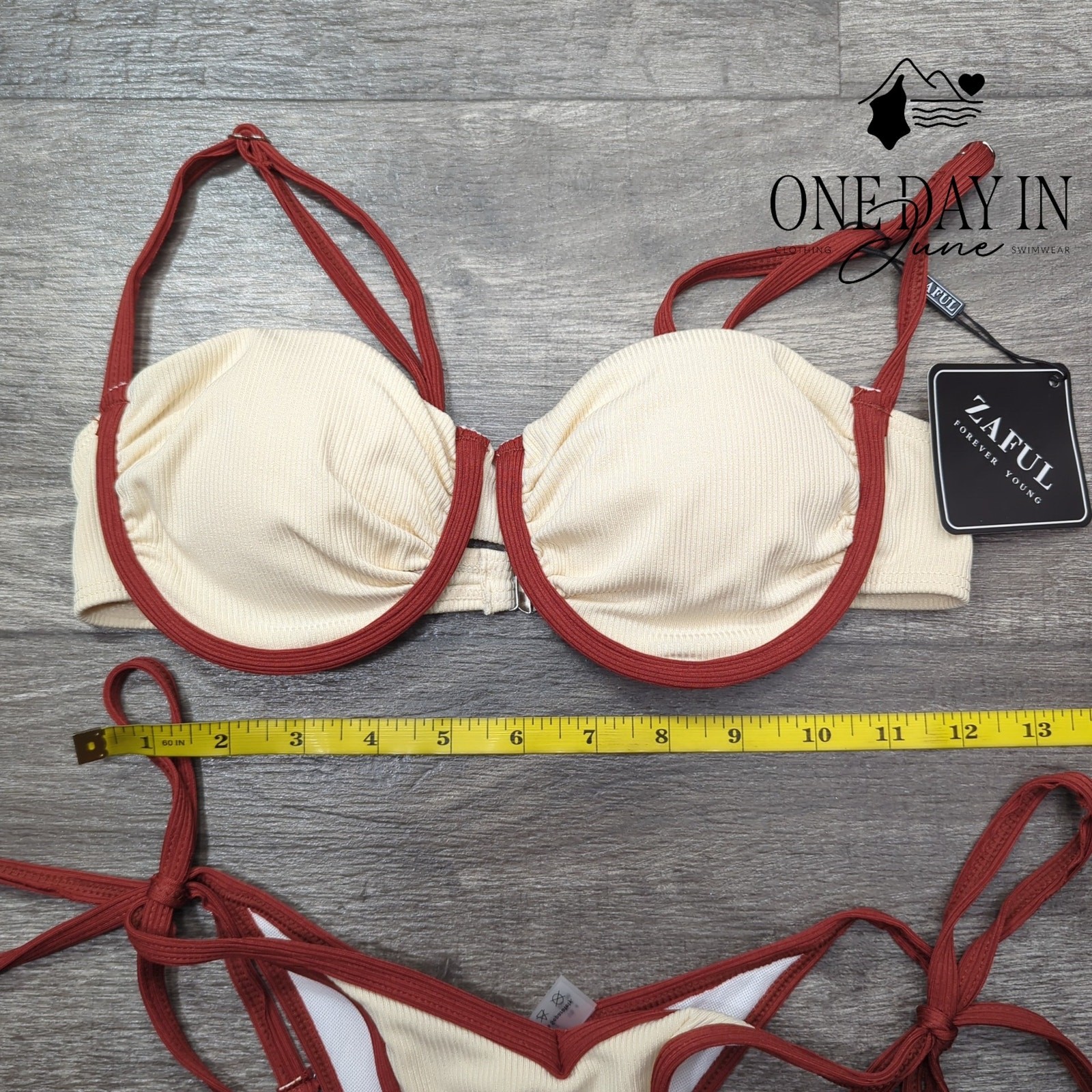 как выглядит Zaful Ribbed Underwire Tie Side Bikini Swimsuit Size S фото