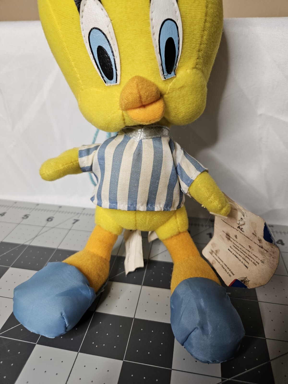 • Looney Tunes Vintage 1997 Tweety Bird Bedtime 10 Plush Toy Blue Striped Pjs