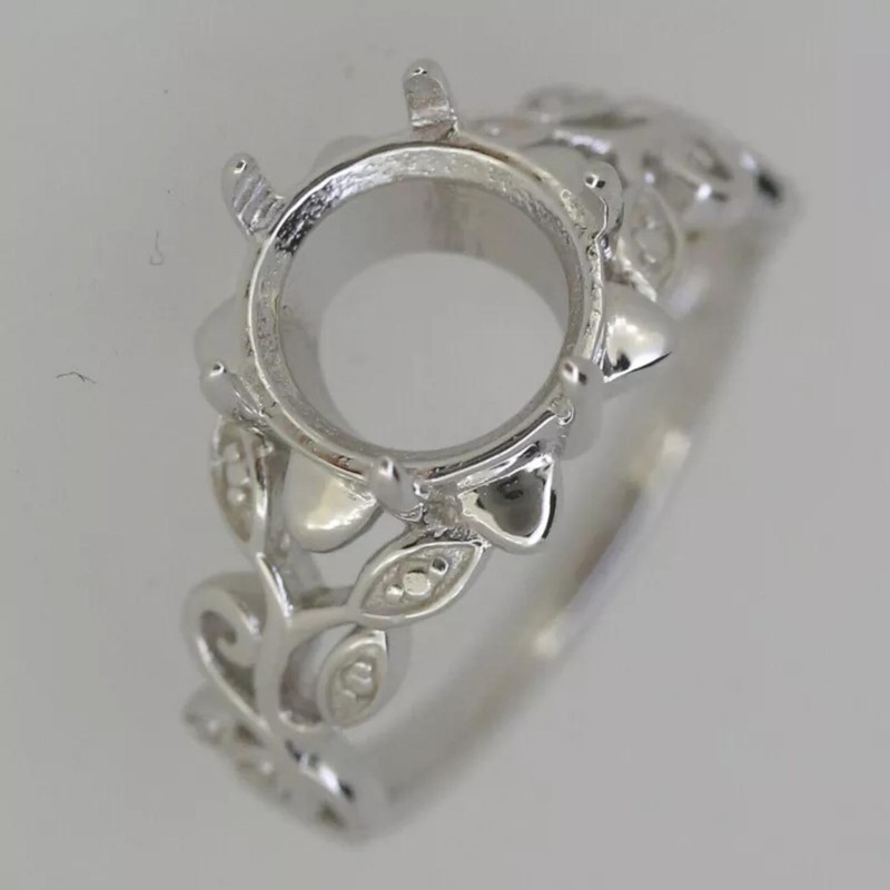 Round Shape 8MM Semi Mount Women Ring 925 Sterling Silver Solitaire Wedding Ring