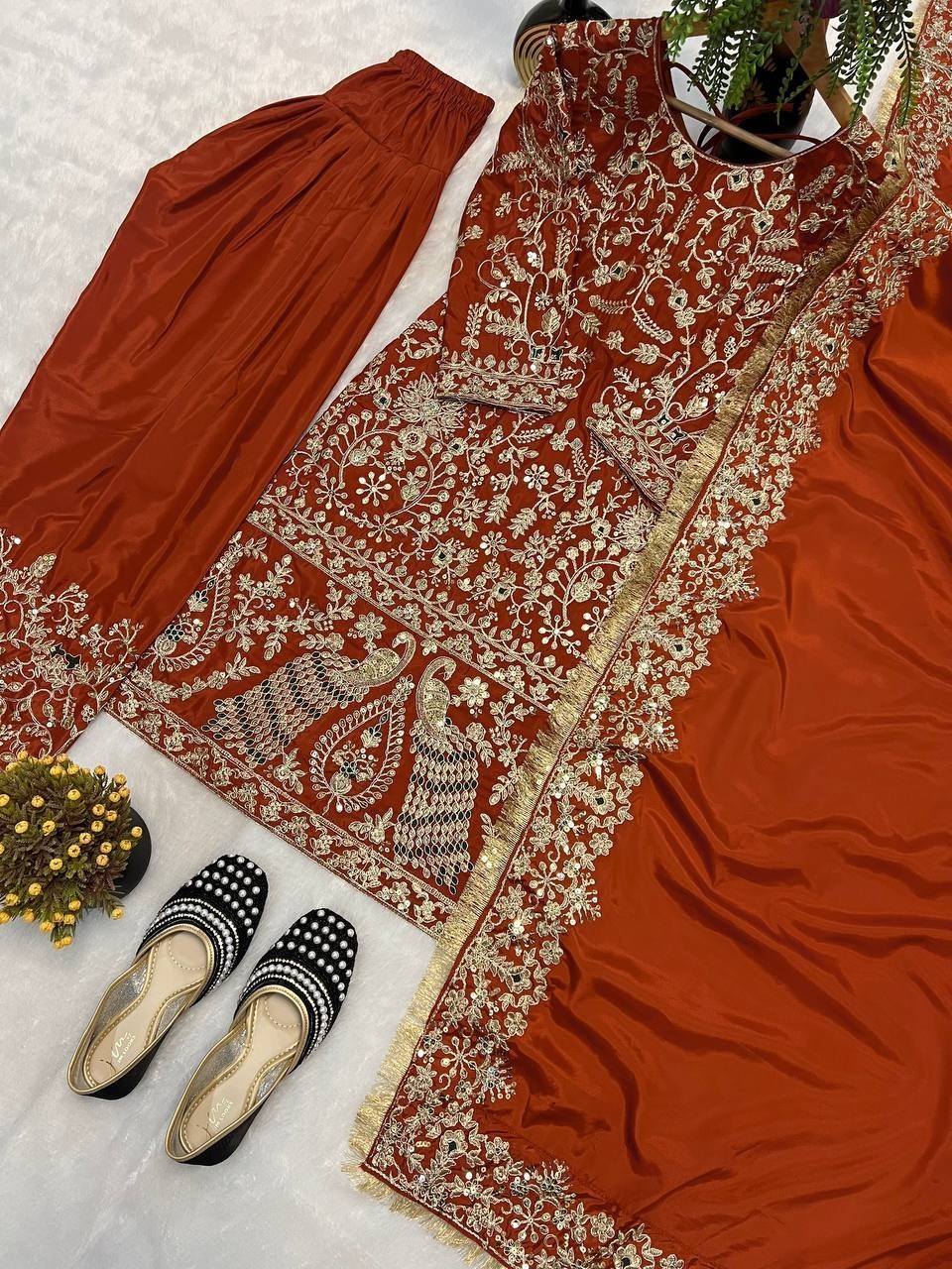 Designer New Heavy Natural Crepe Top Bottom With Orange Dupatta For Party Wear