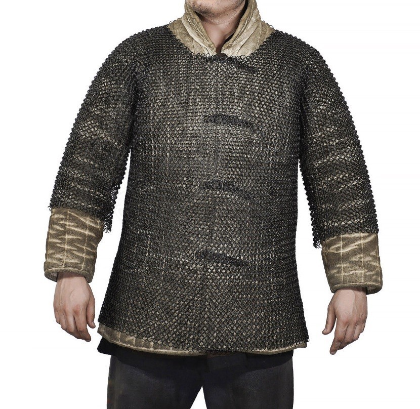 как выглядит Medieval Haubergeon 10 mm Mild Steel Butted Black Chainmail Shirt Larp Armor L фото