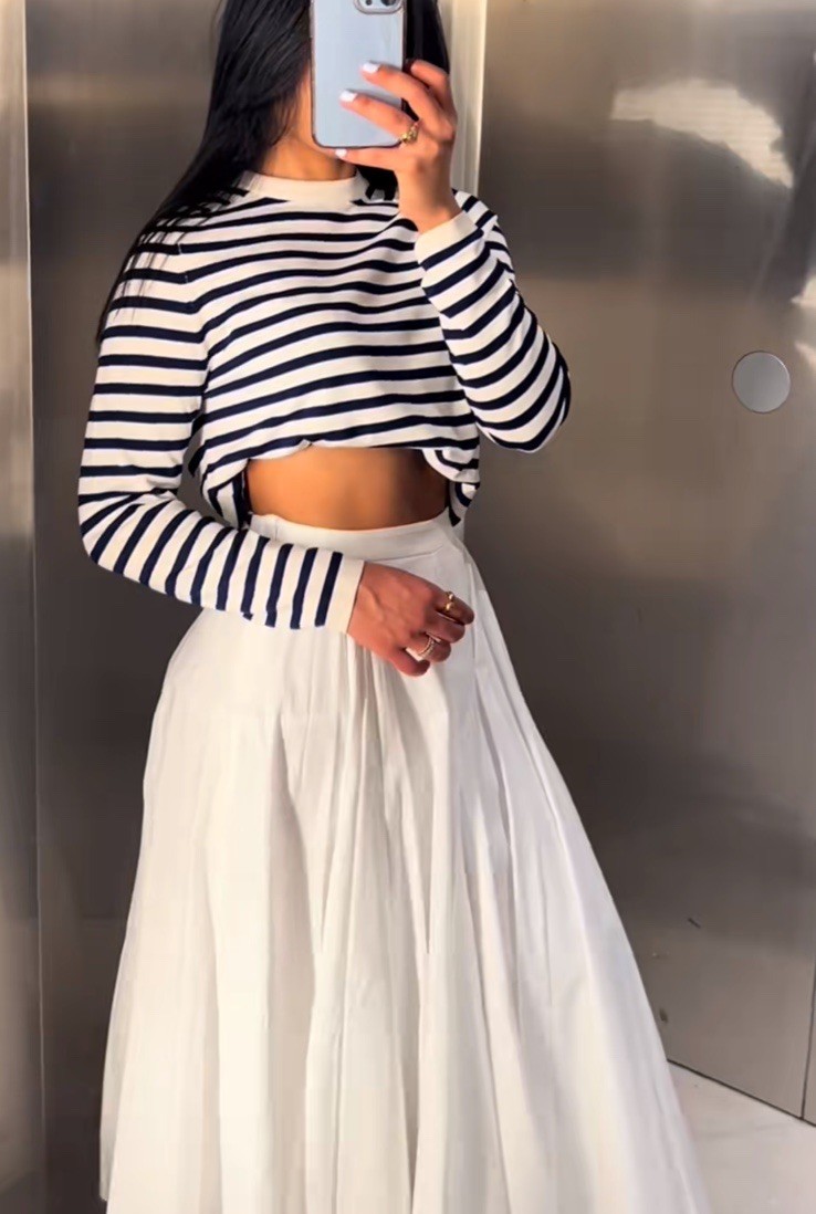 как выглядит ZARA NWT WOMAN SS25 LONG SKIRT ZW COLLECTION OYSTER-WHITE 2521/290 фото