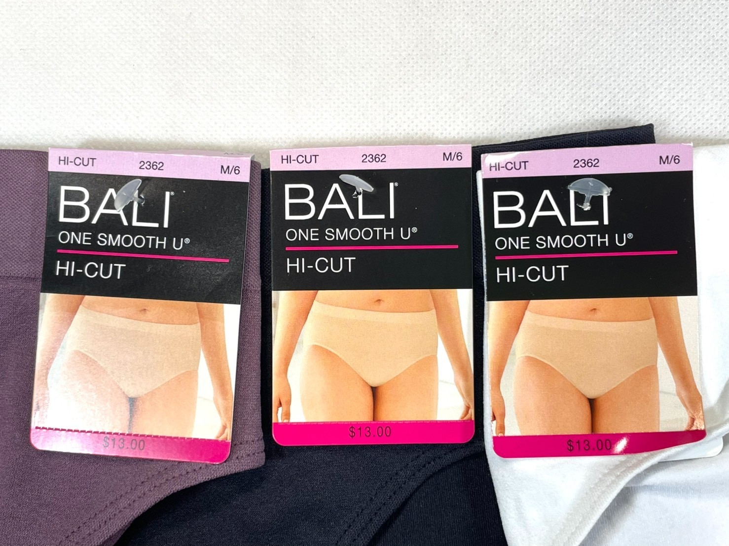 NWT 3-Pack Bali Women's M One Smooth U All-Over Smoothing Hi Cut Brief 2362