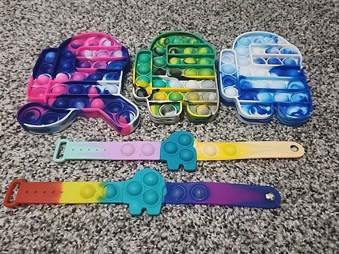 Among Us - Pop It Fidget Toy Crew Mate Lot Of 5 Two Bracelets Three Charters 6