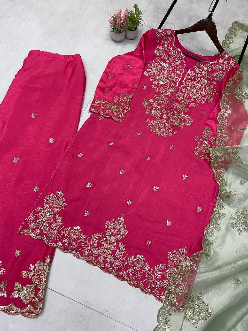 Presenting New Chinnon Pink Top Palazzo With Dupatta For Functional Wear
