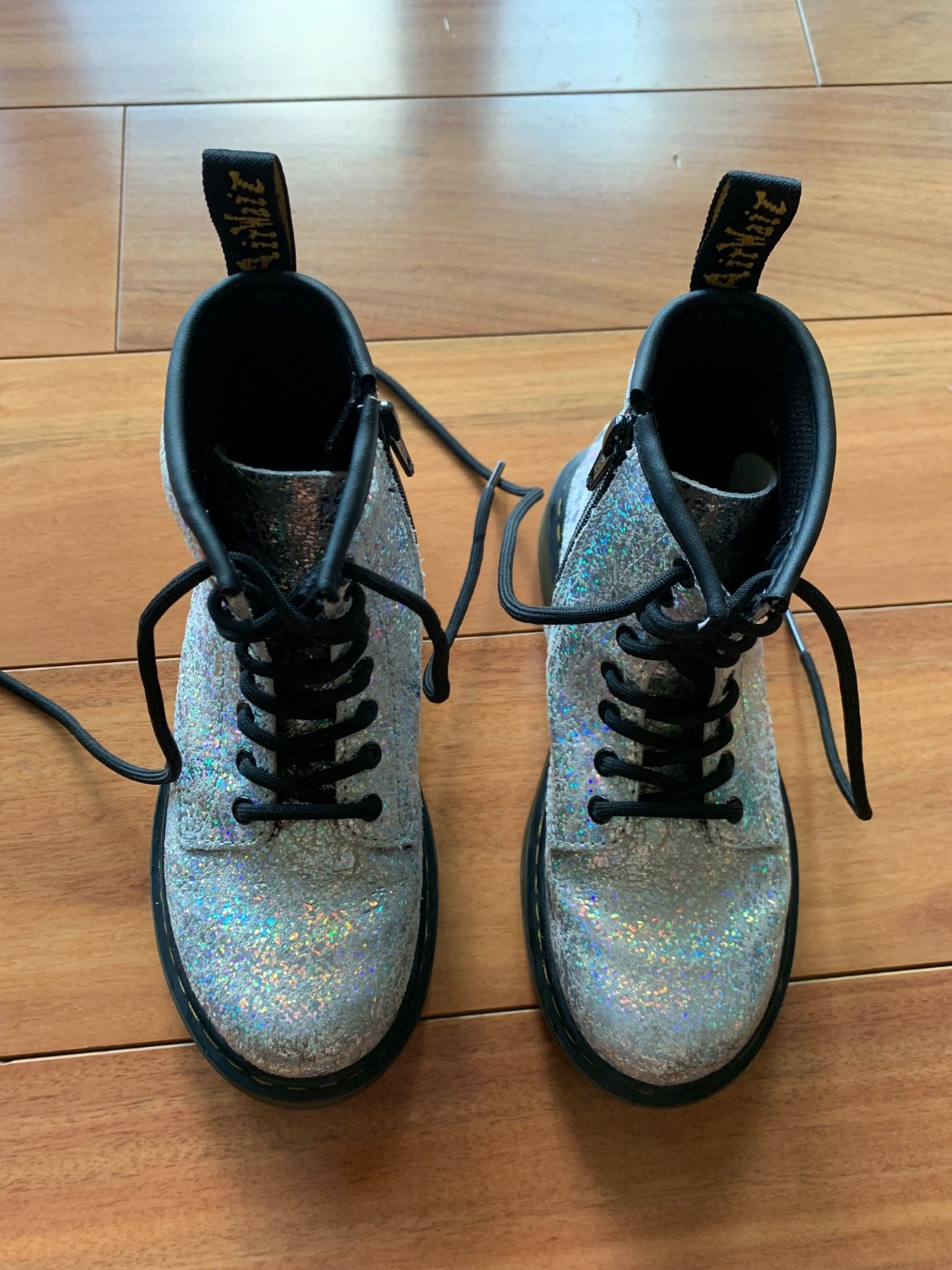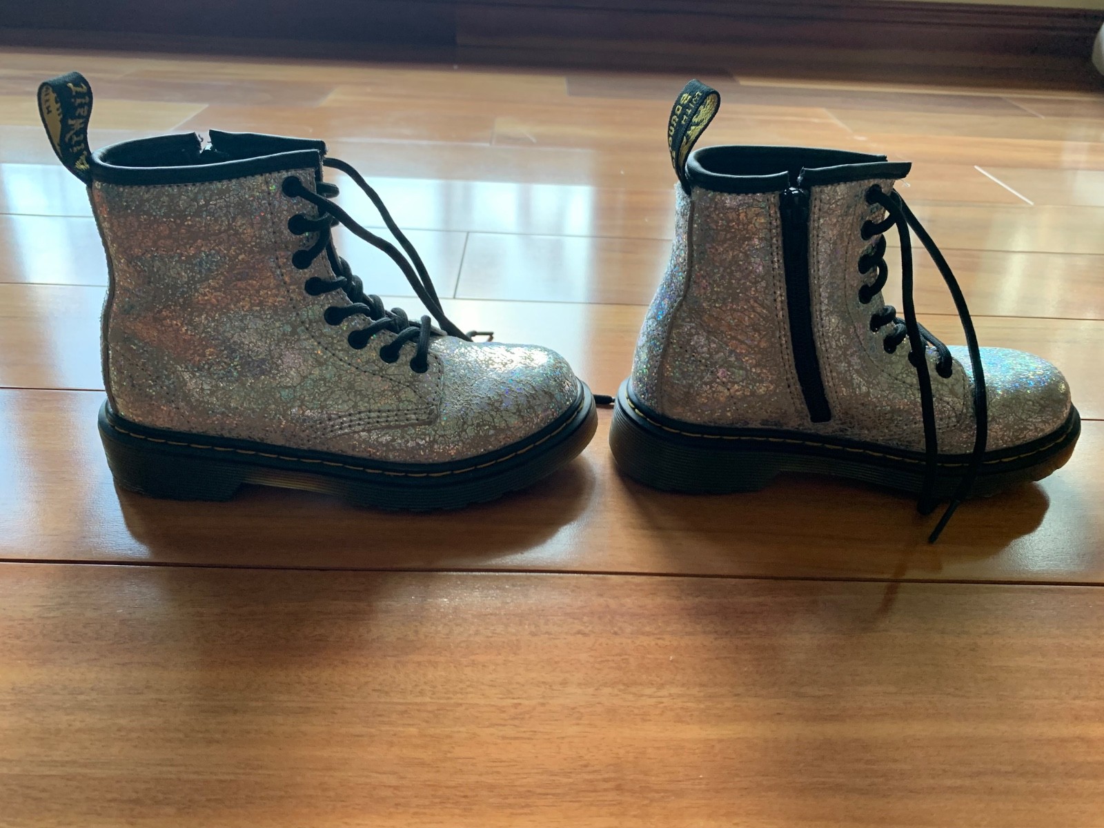 как выглядит Dr. Doc Martens 1460 J Silver Holographic Glitter Combat Boots - Kids Size 13 фото