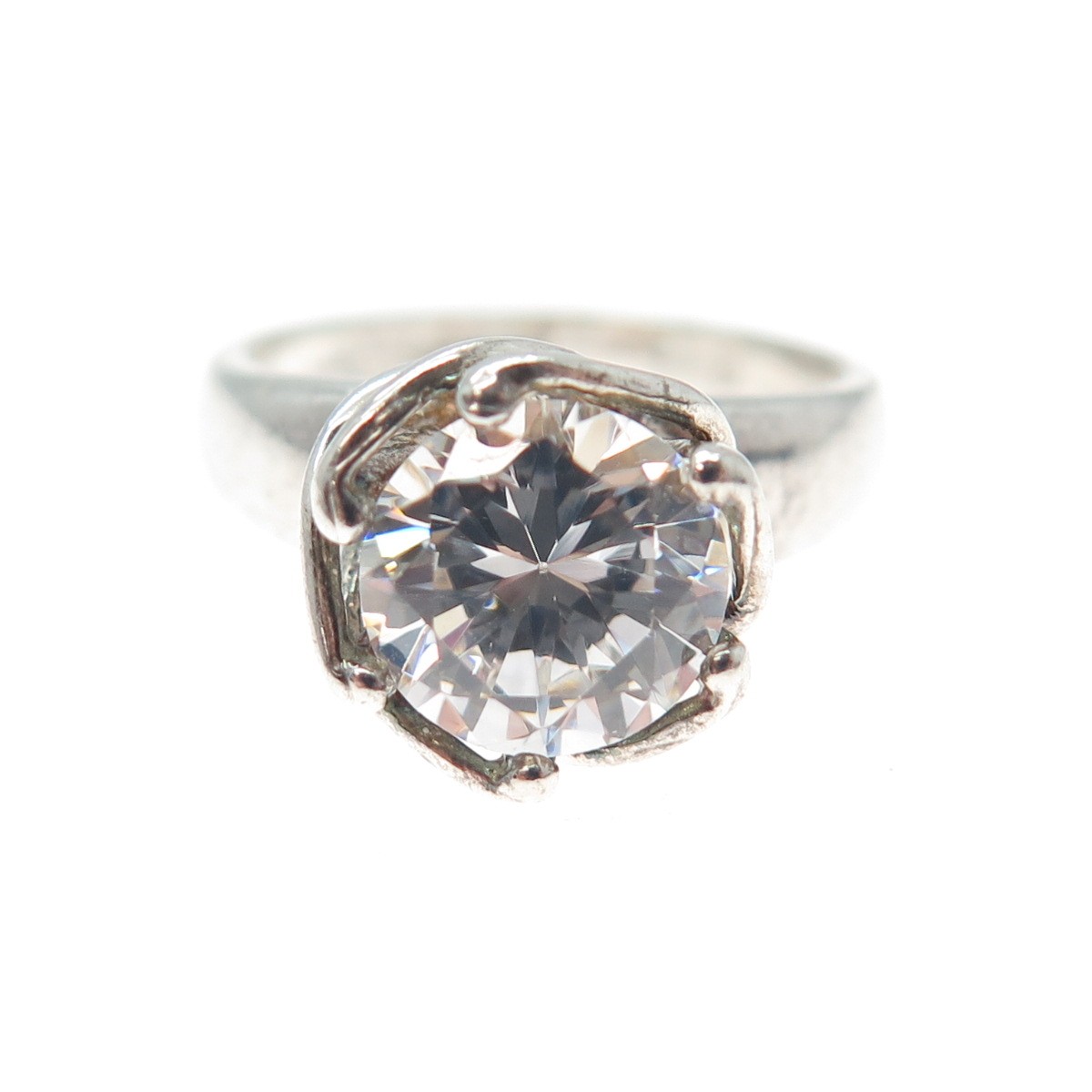 925 Sterling Silver Vintage Round-Cut C Z Engagement Ring Size 6.25