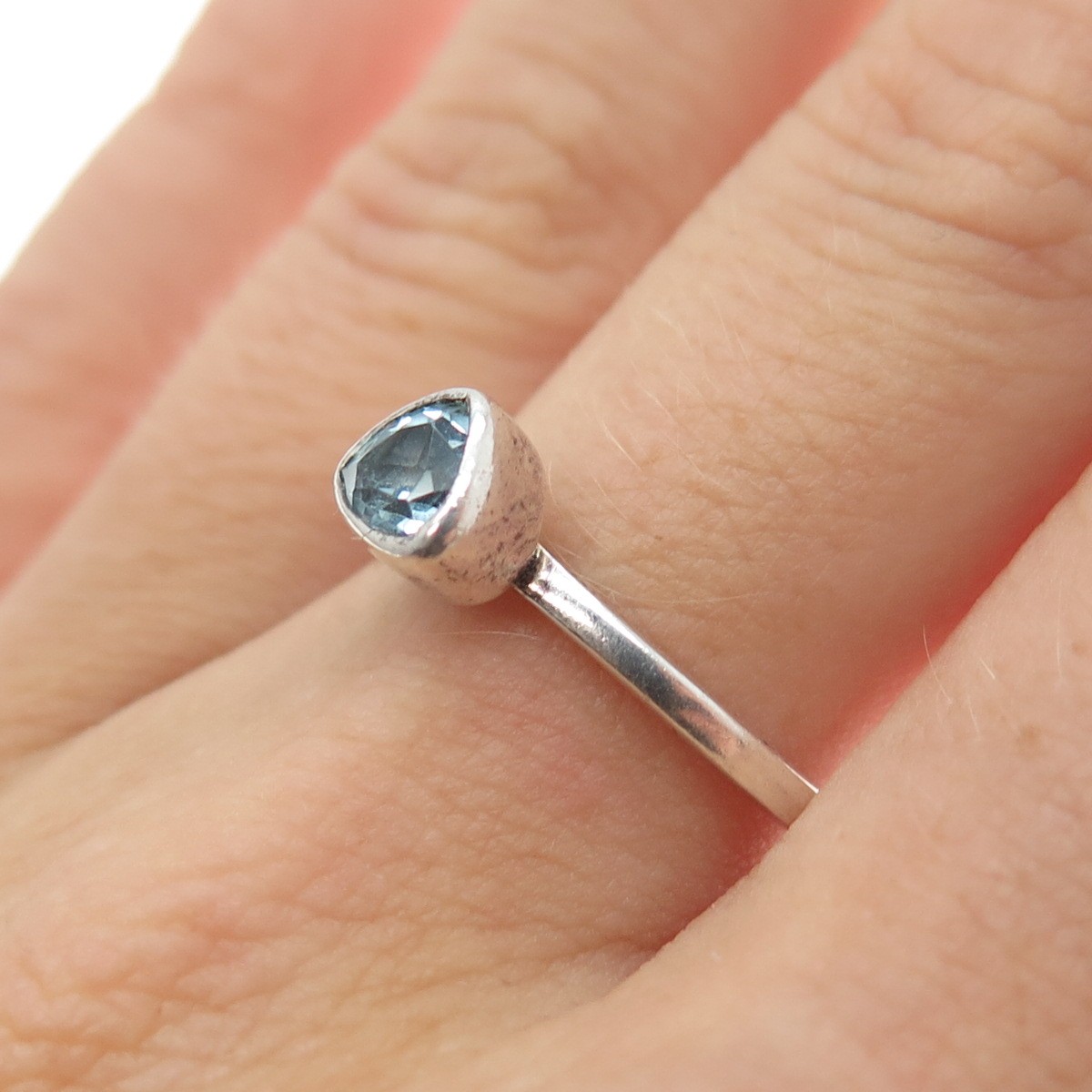 925 Sterling Silver Vintage Real Triangle-Cut Blue Topaz Ring Size 6.25