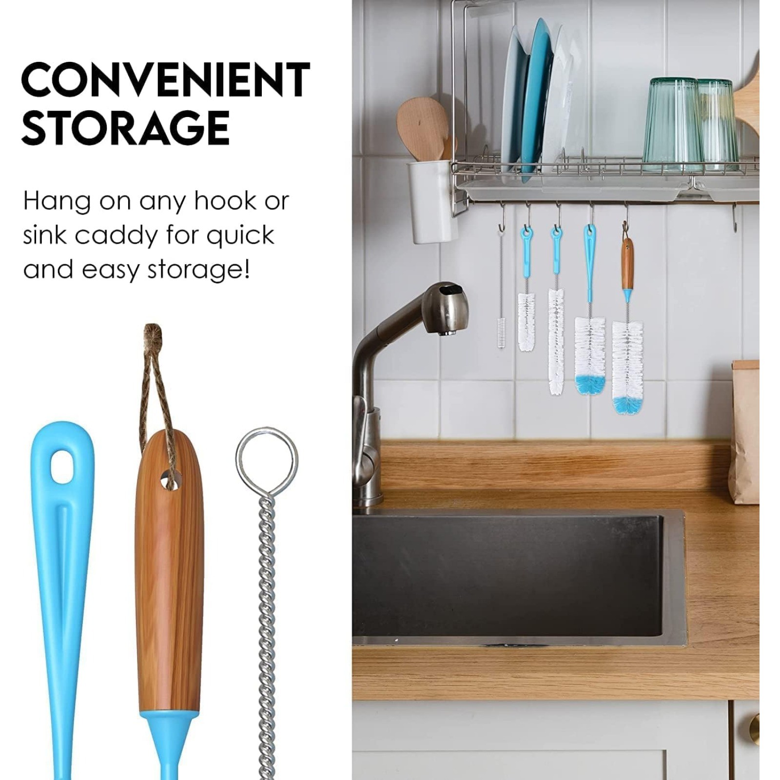 US Nylon Bottle Brush Cleaner Bottle Tube Pipe Small Long Cleaning 5Pcs Set