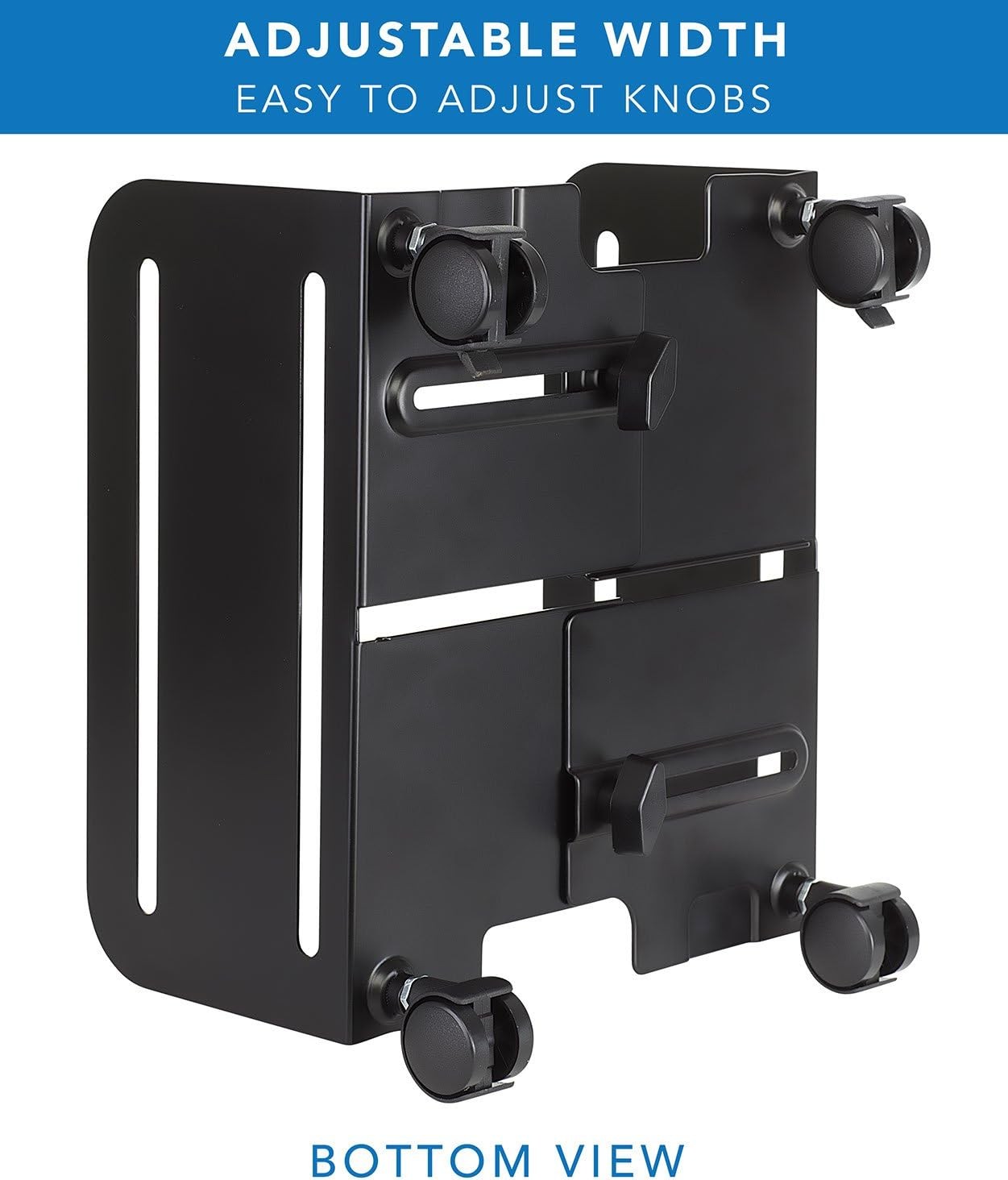 Computer Tower Stand, Adjustable Mobile CPU Stand with Wheels, Heavy-Duty Steel