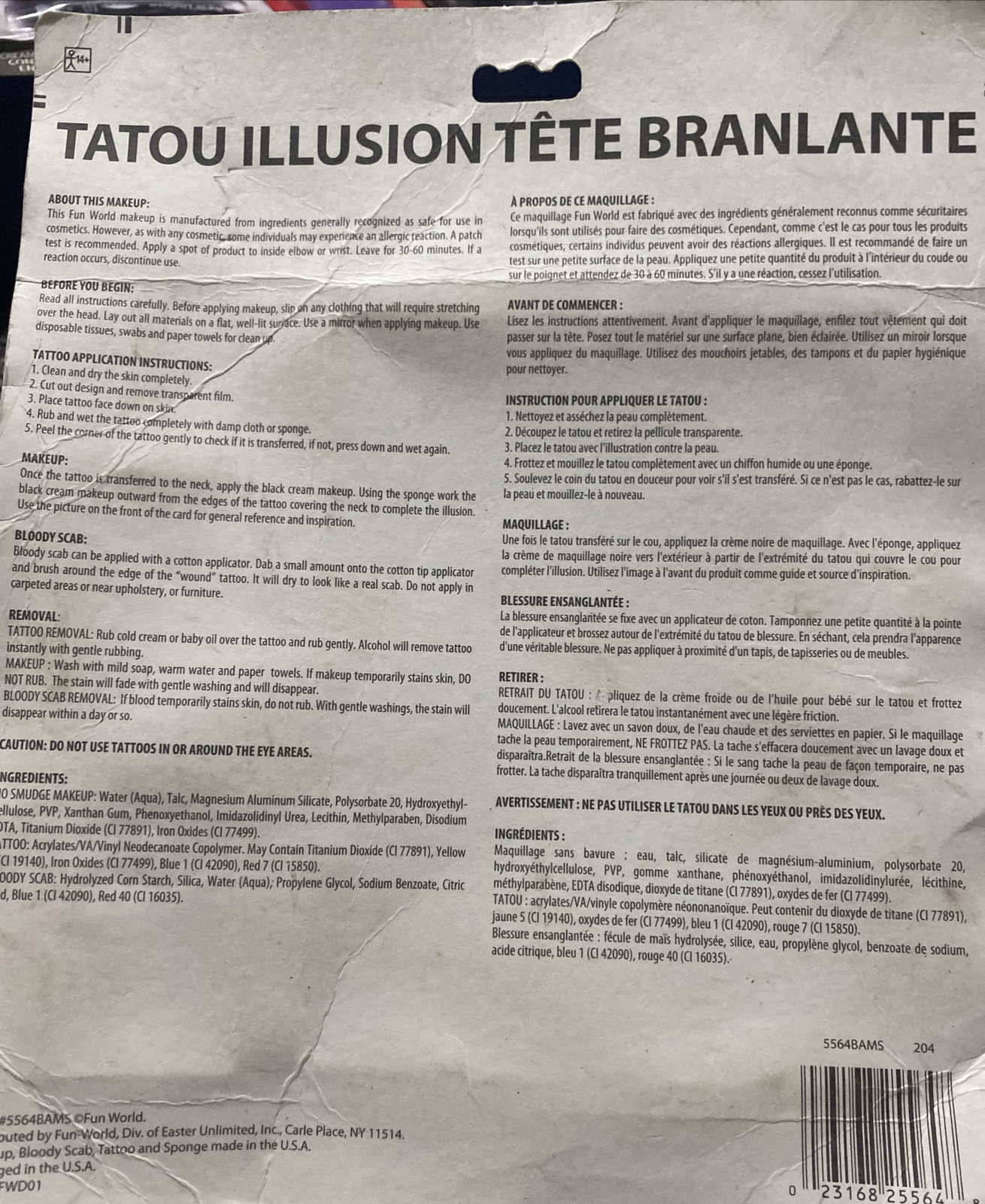 Bobble Head Illusion Makeup Kit Halloween Bobblehead Costume Cosplay