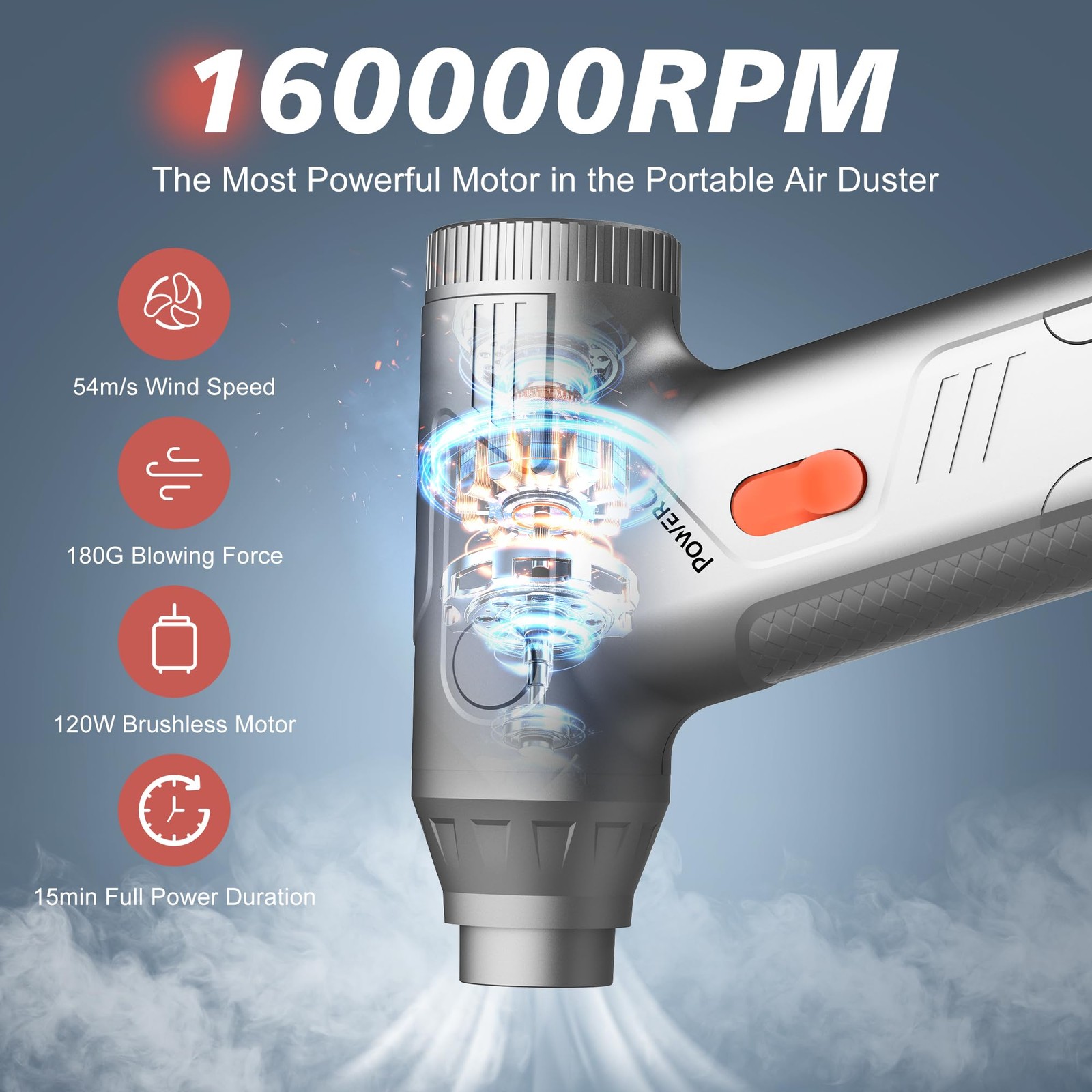 Mini Compressed Air Duster - 160000RPM Electric Air Duster, Stepless Speed Ti...