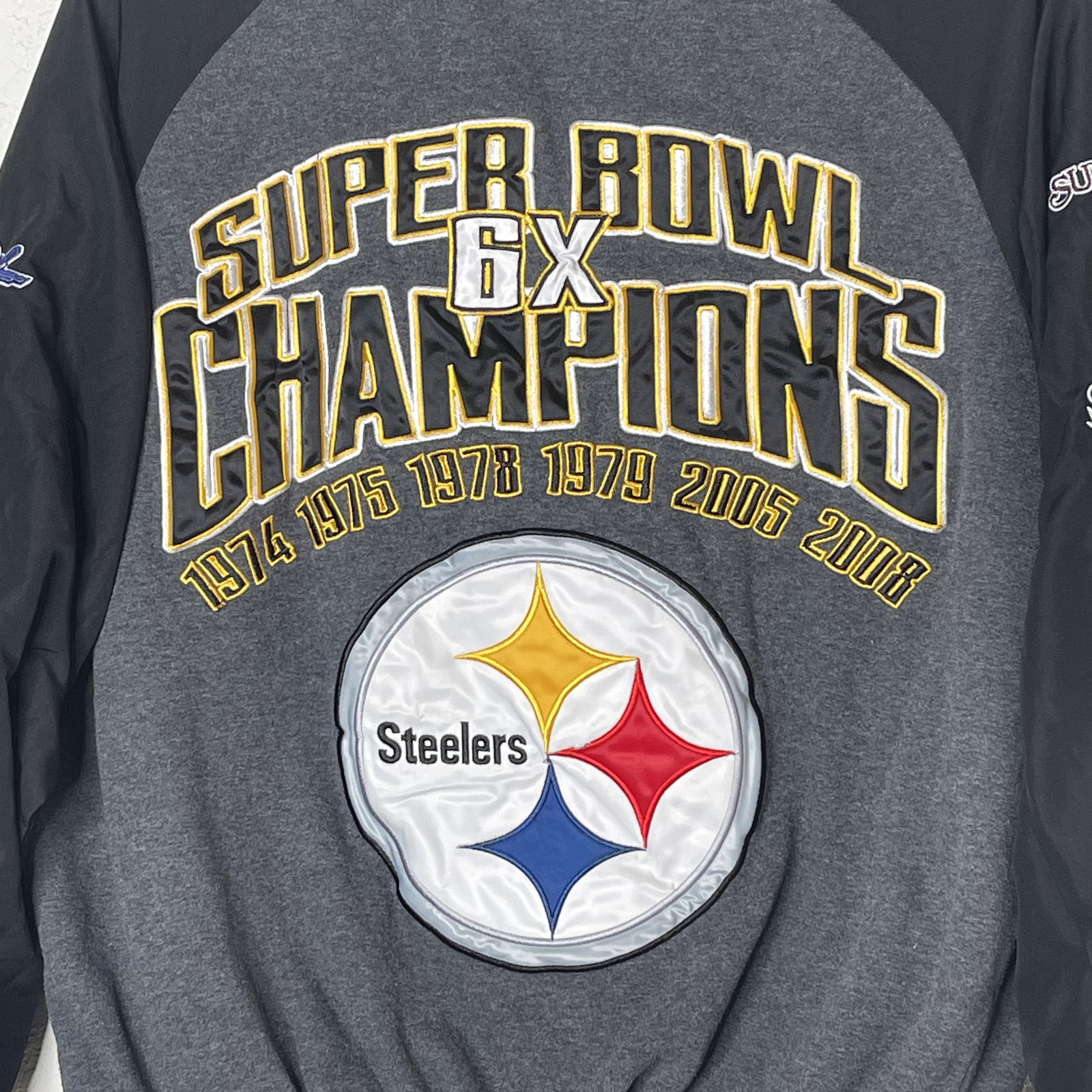 Pittsburg Steelers NFL 6X Super Bowl Champions Varsity Jacket Size L Embroidered