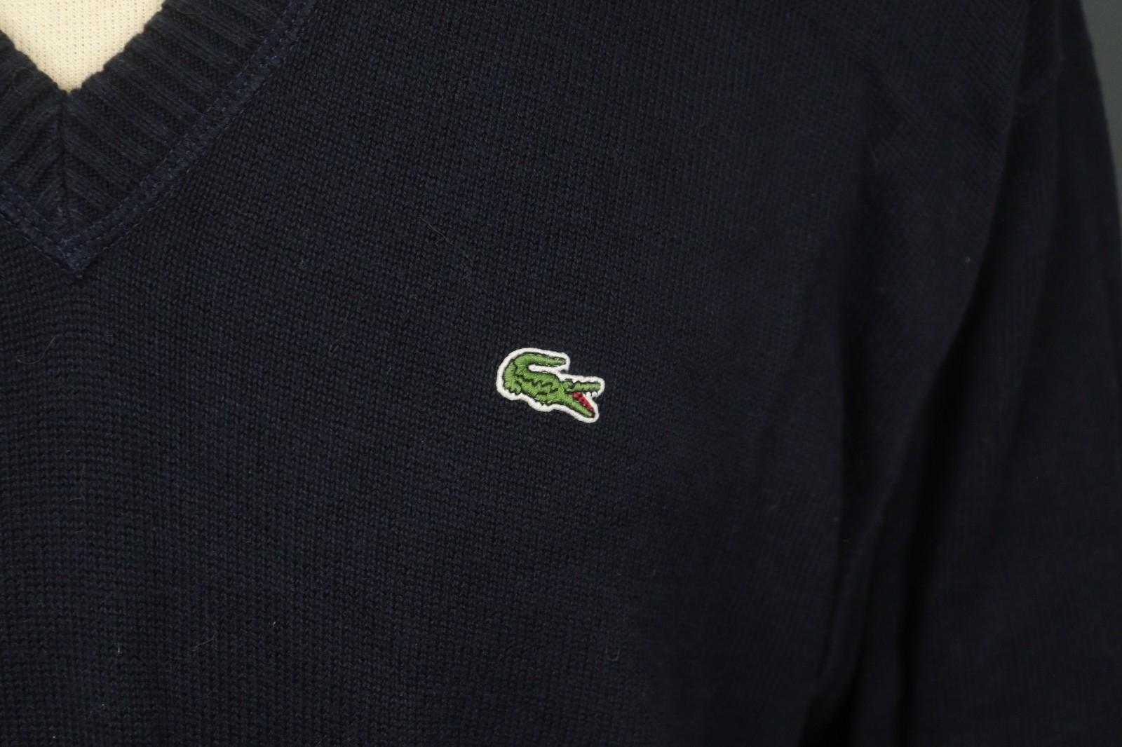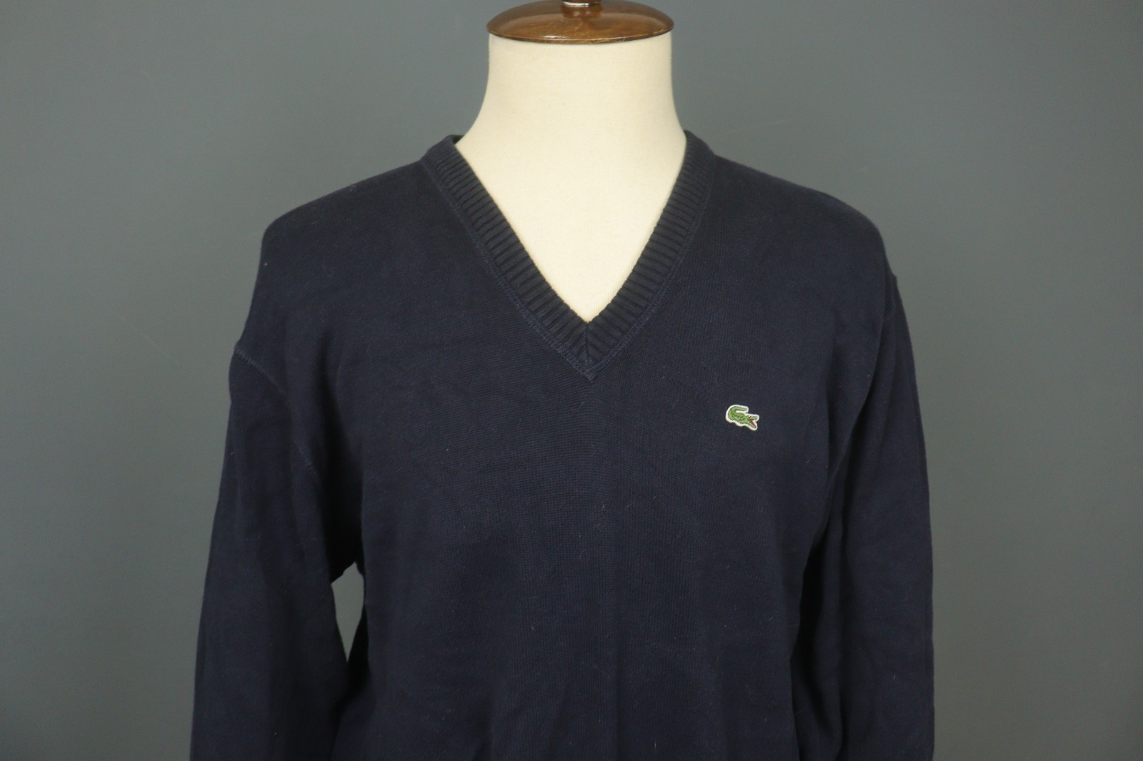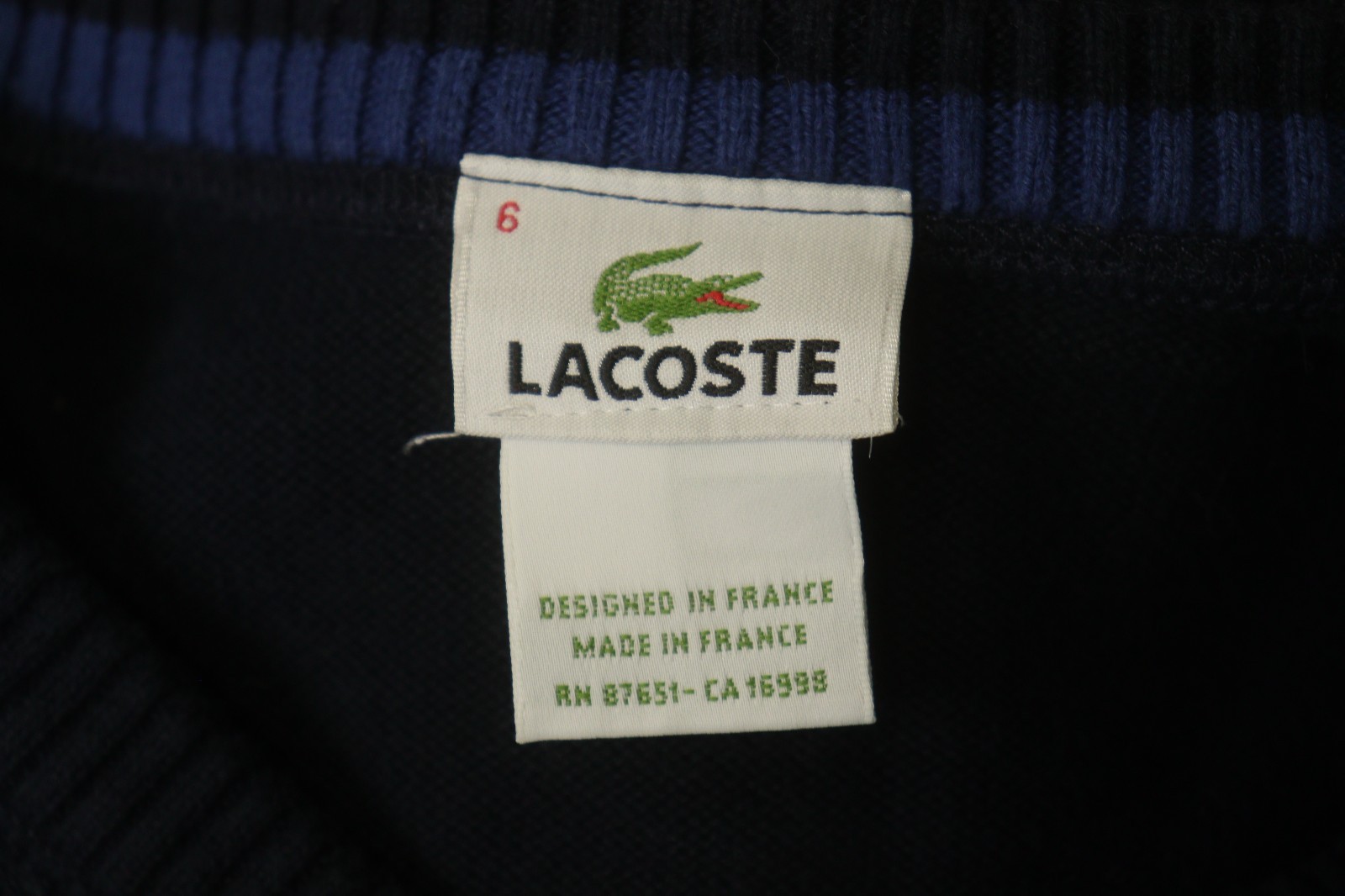 как выглядит Lacoste Navy 100 Cotton Knitted Raglan Sleeve V-Neck Pullover Sweater Size 6 фото