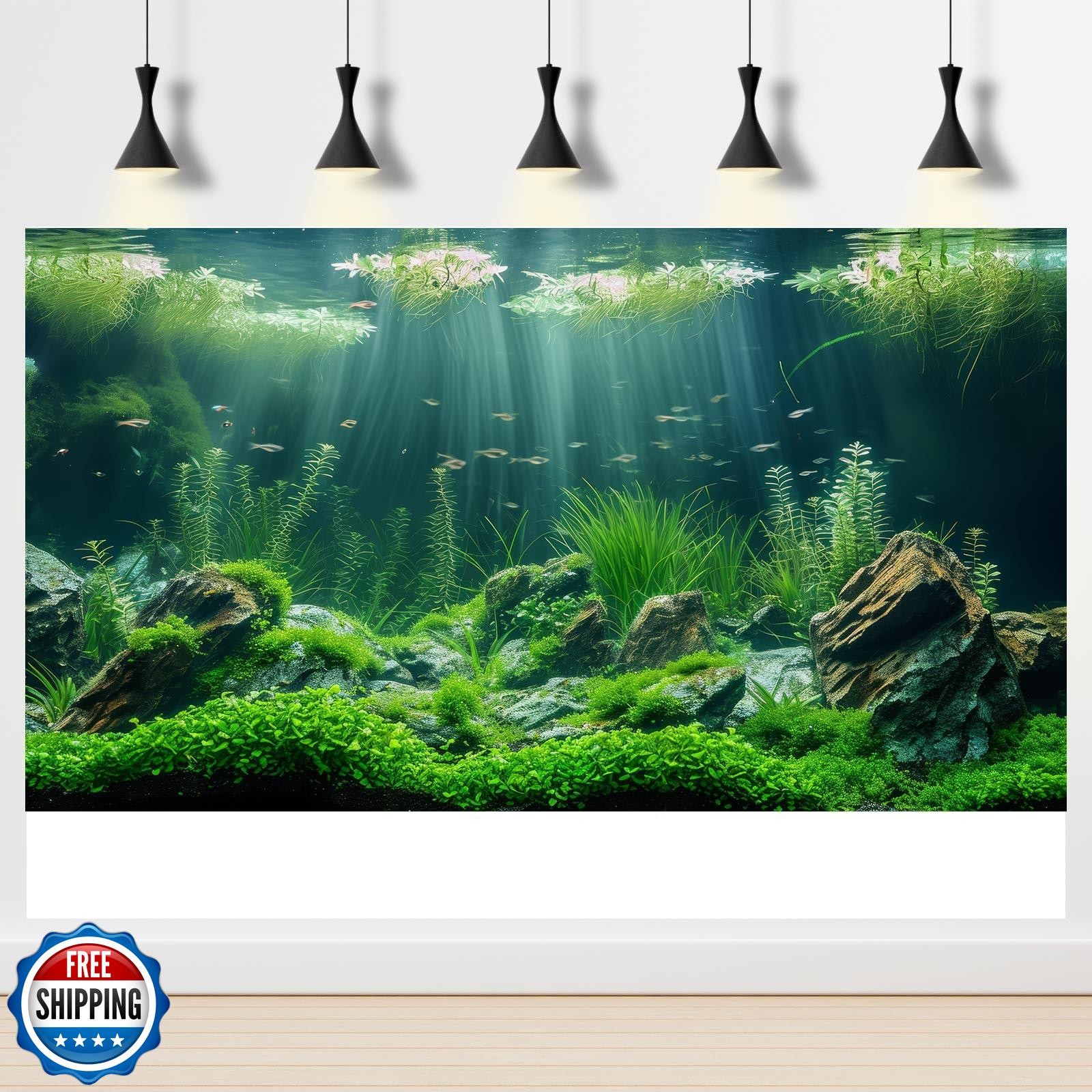 Aquarium Background Underwater Grass Leaves with Stone Aquarium Backdrop Vivi