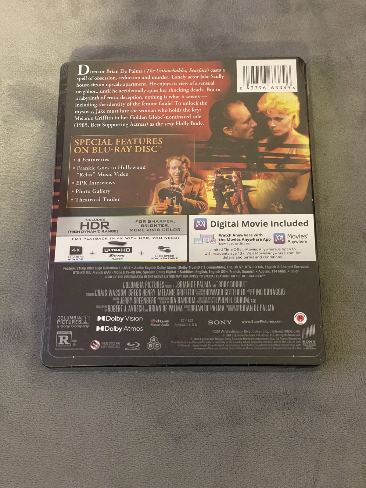 Body Double - 4K UHD/Blu-Ray Digital Code Steelbook SHIPS IN BOX