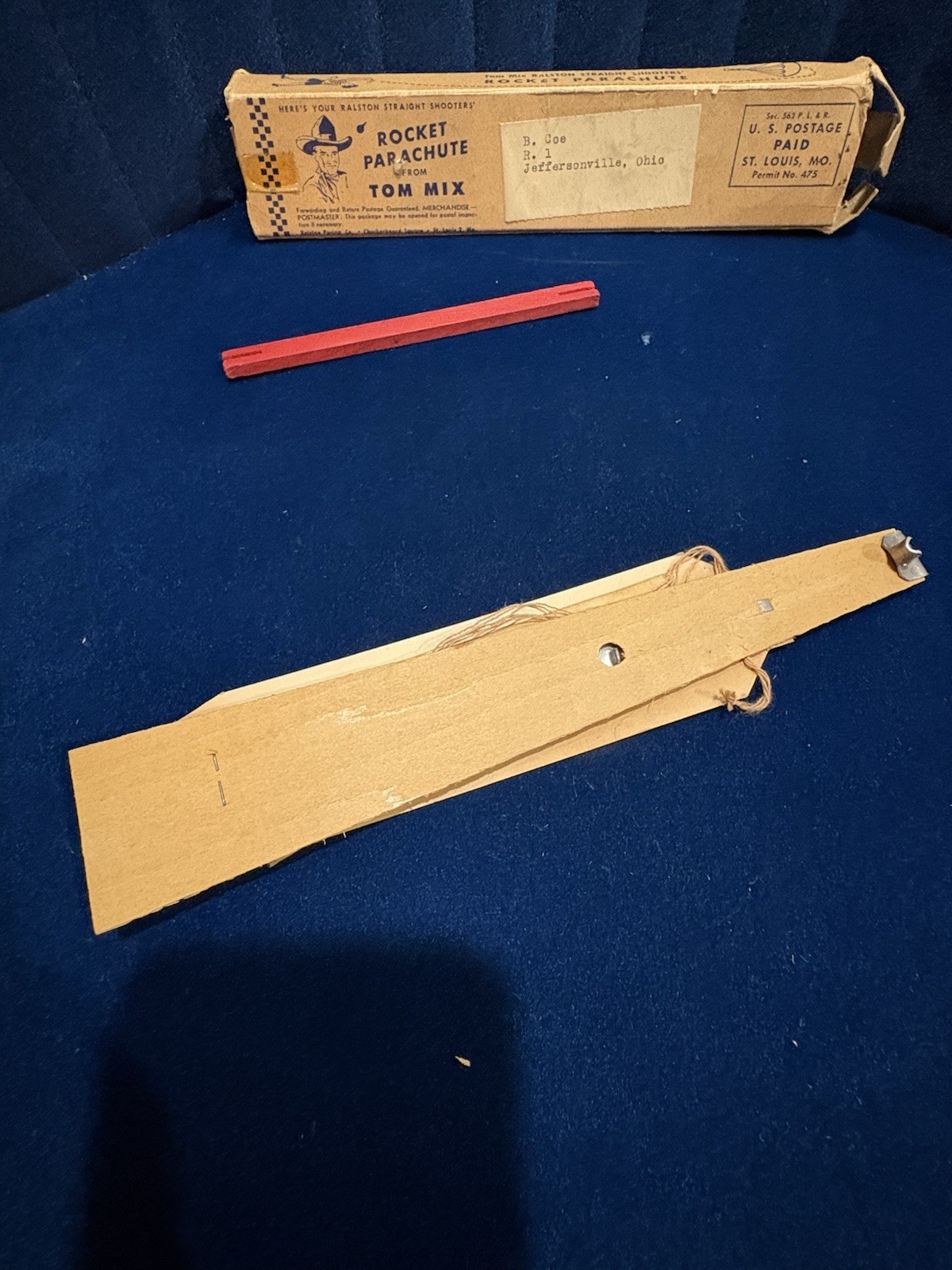 как выглядит CIRCA 1930S 1940S TOM MIX RALSTON CEREAL PREMIUM ROCKET PARACHUTE NEW IN BOX фото