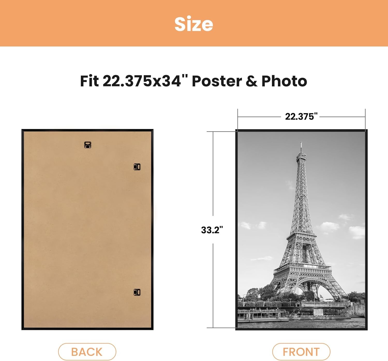 22.375 x 34 Poster Frame Black 3 Pack, Scratch-Proof Picture Frames