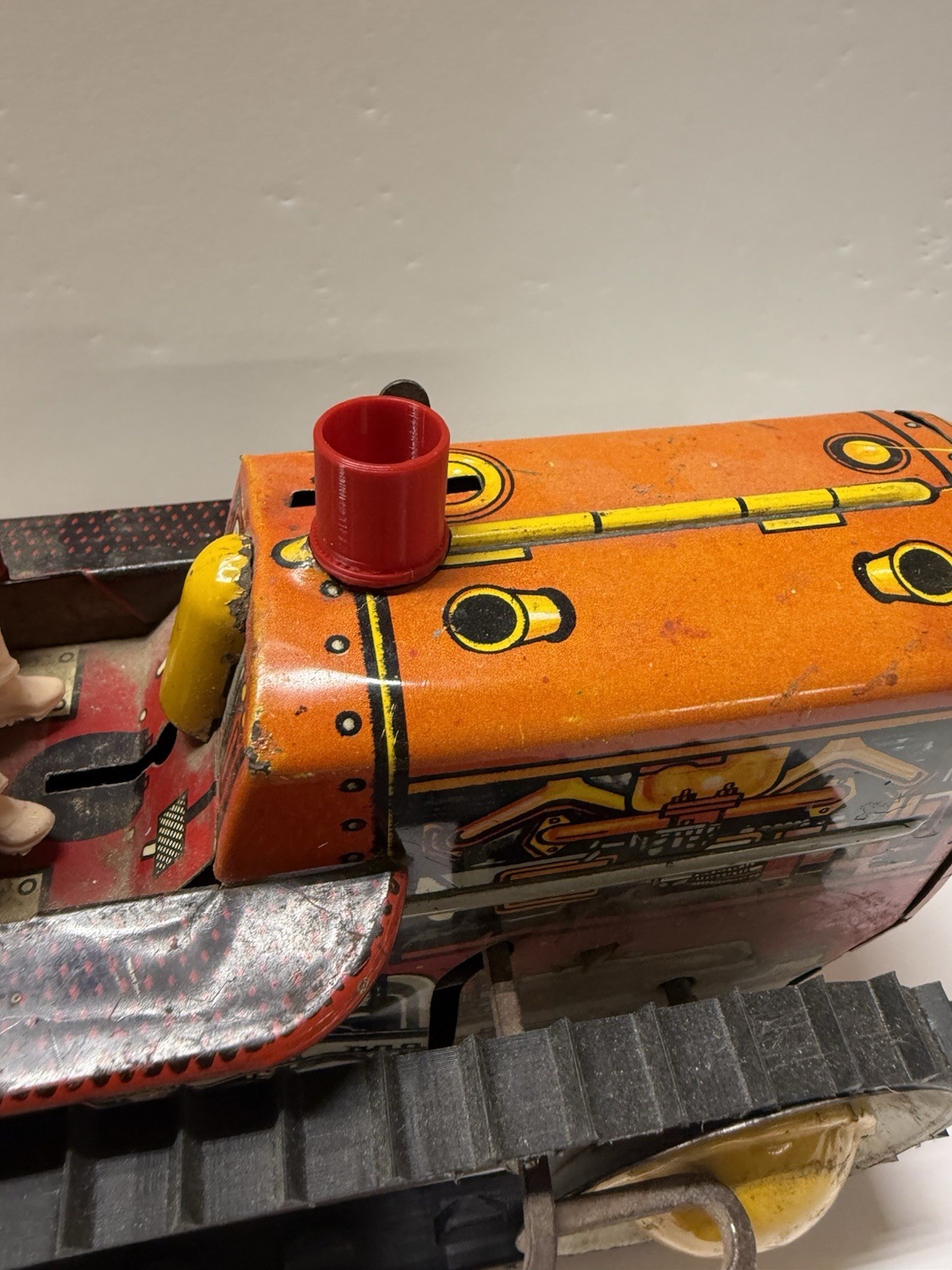 2 red stacks for Marx Tin Wind-up Red Climbing Tractor TD 18 Diesel 12 Litho