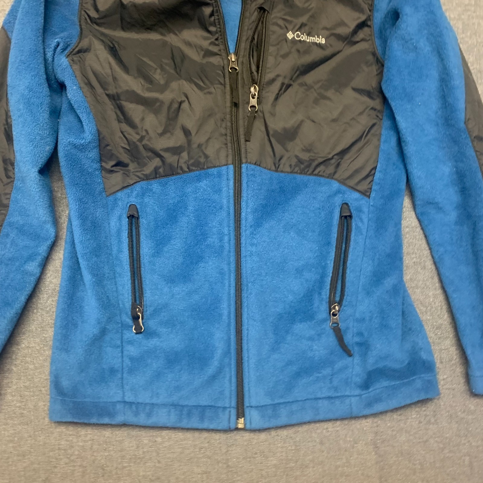 как выглядит Columbia Boys Jacket Size L 14-16 Blue Black Lined Fleece Full Zip Outerwear фото