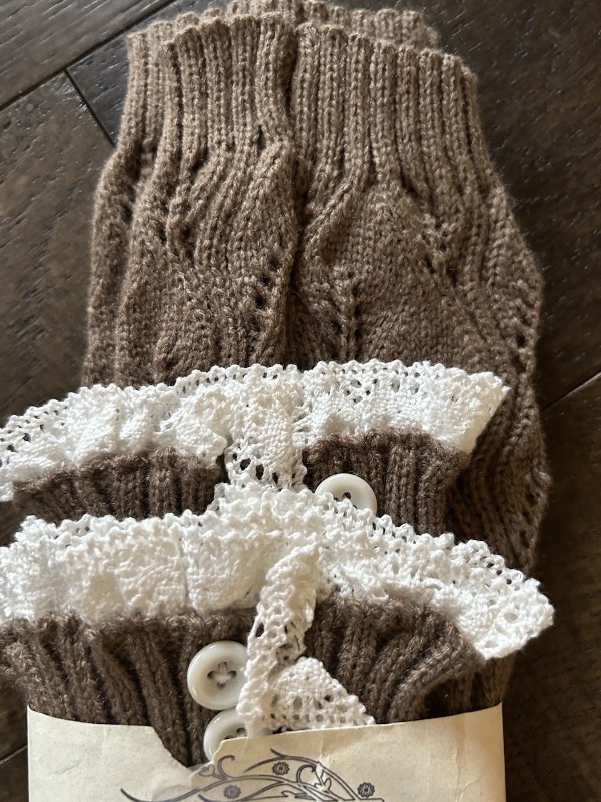 как выглядит Womens  Leg Warmers  New  Tan w/ Cream Ruffle Button фото