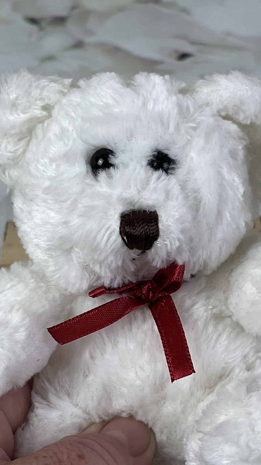 как выглядит BITSY Beary Friends White Bear Plush Aurora Stuffed TAGS Vintage A A Red Bow фото