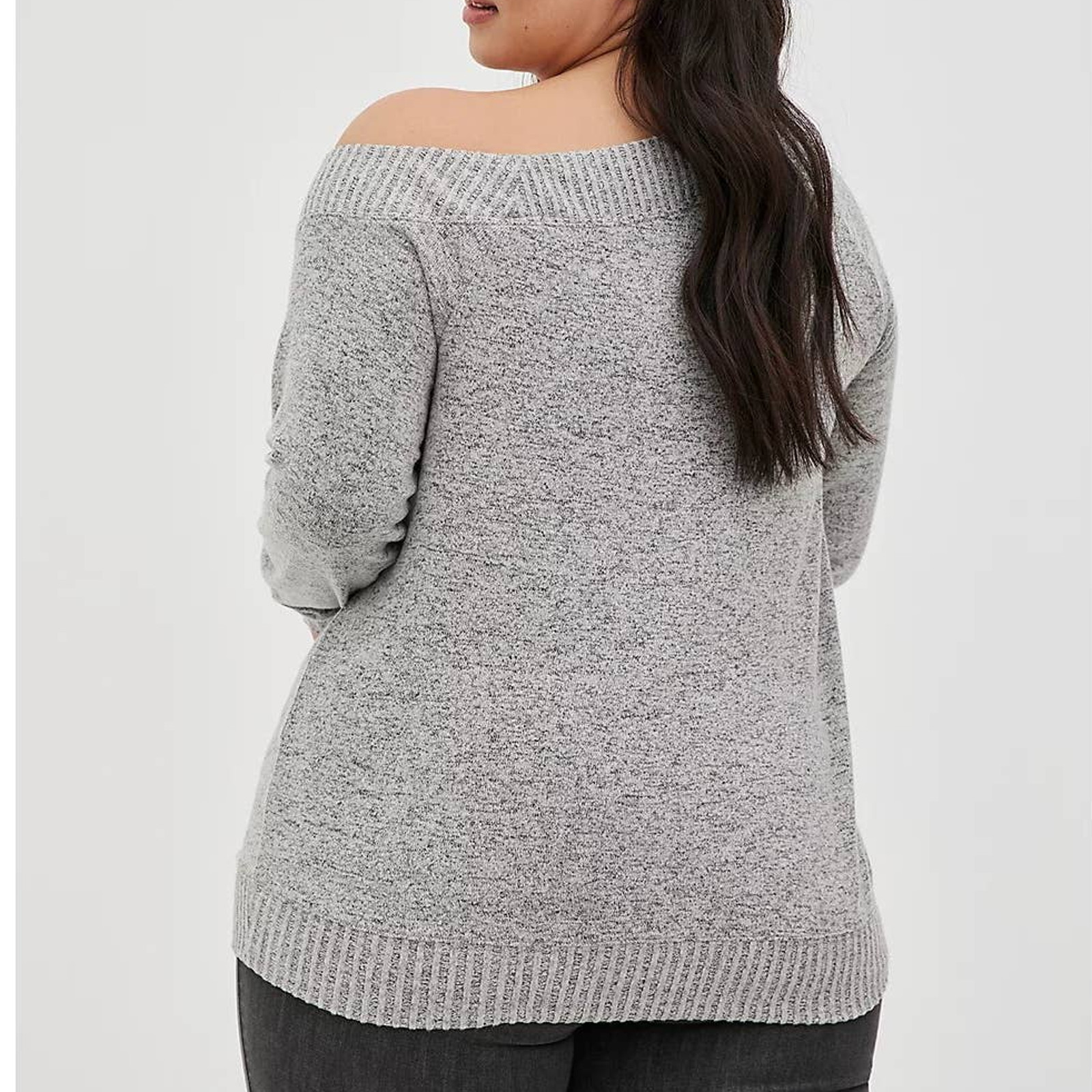 как выглядит New Torrid 6 6X 30 Off Shoulder Super Soft Plush Rib Trim Pullover Sweatshirt фото