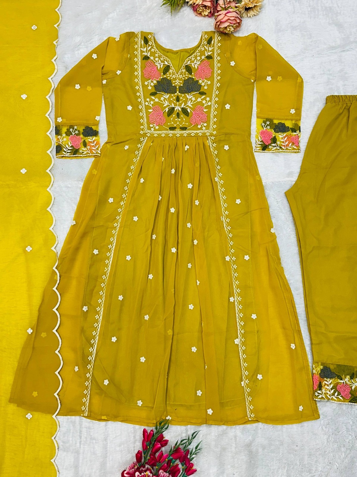 New Latest Yellow Heavy Georgette Gown Bottom With Dupatta For Women Wear