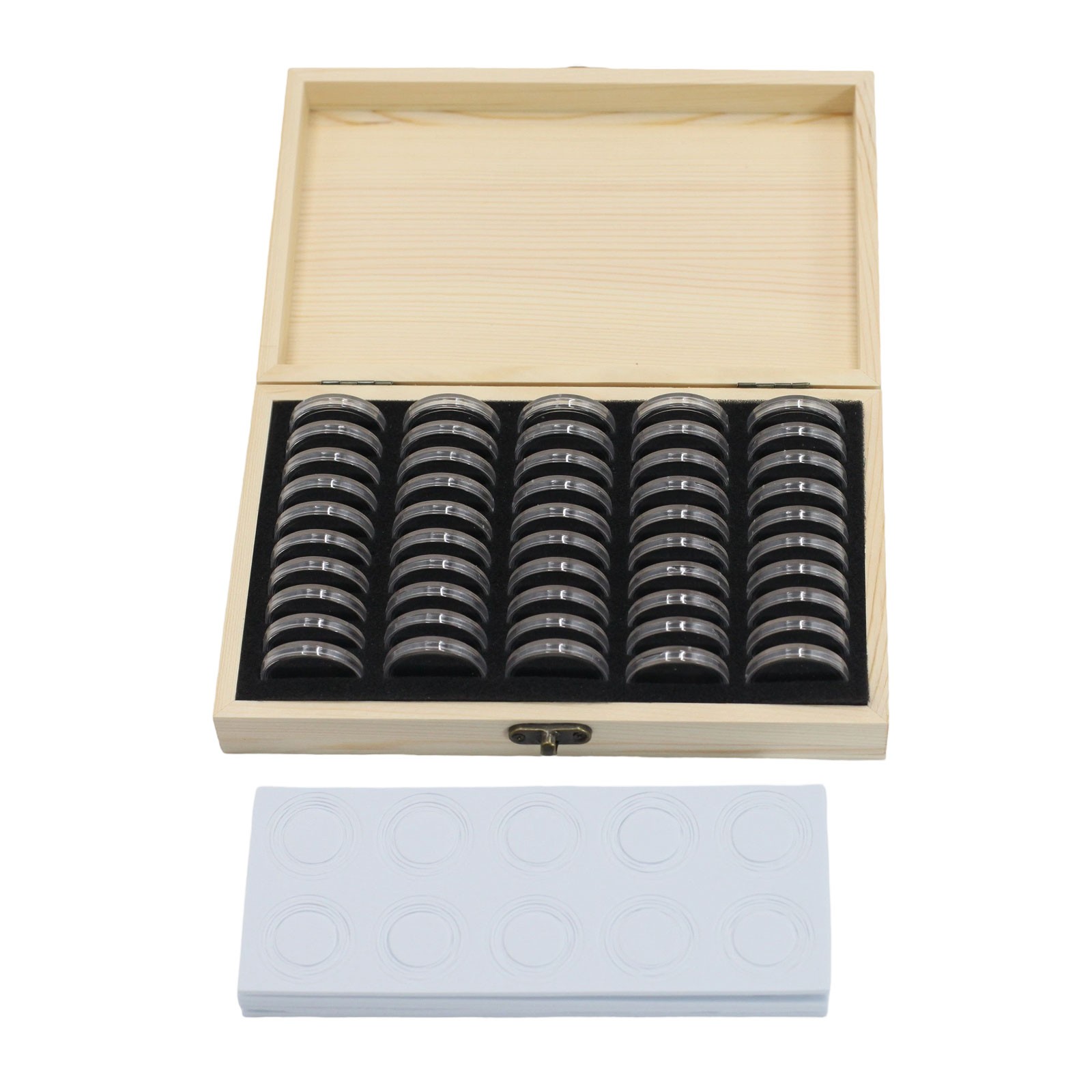 • 50pcs Coin Capsules Storage Box with Wooden Case Holders Collection Display Box